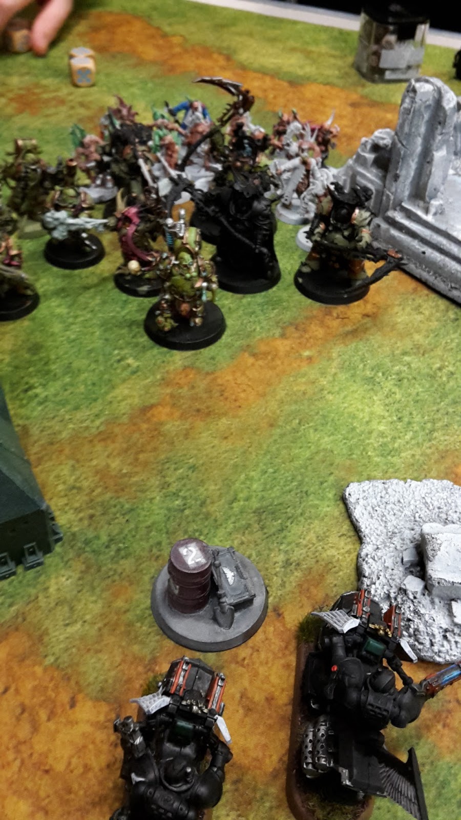 I think this scenario was a little unfair in that it played completely into the strengths of my list, while severely punishing the slow nature of Connor’s Death Guard army. It also didn’t help that practically all my reserves came in on turn 1, whereas very few of Connor’s units came in until turn 2. Given that many of his units were slow moving and combat-orientated, this was a big disadvantage for him in the game.