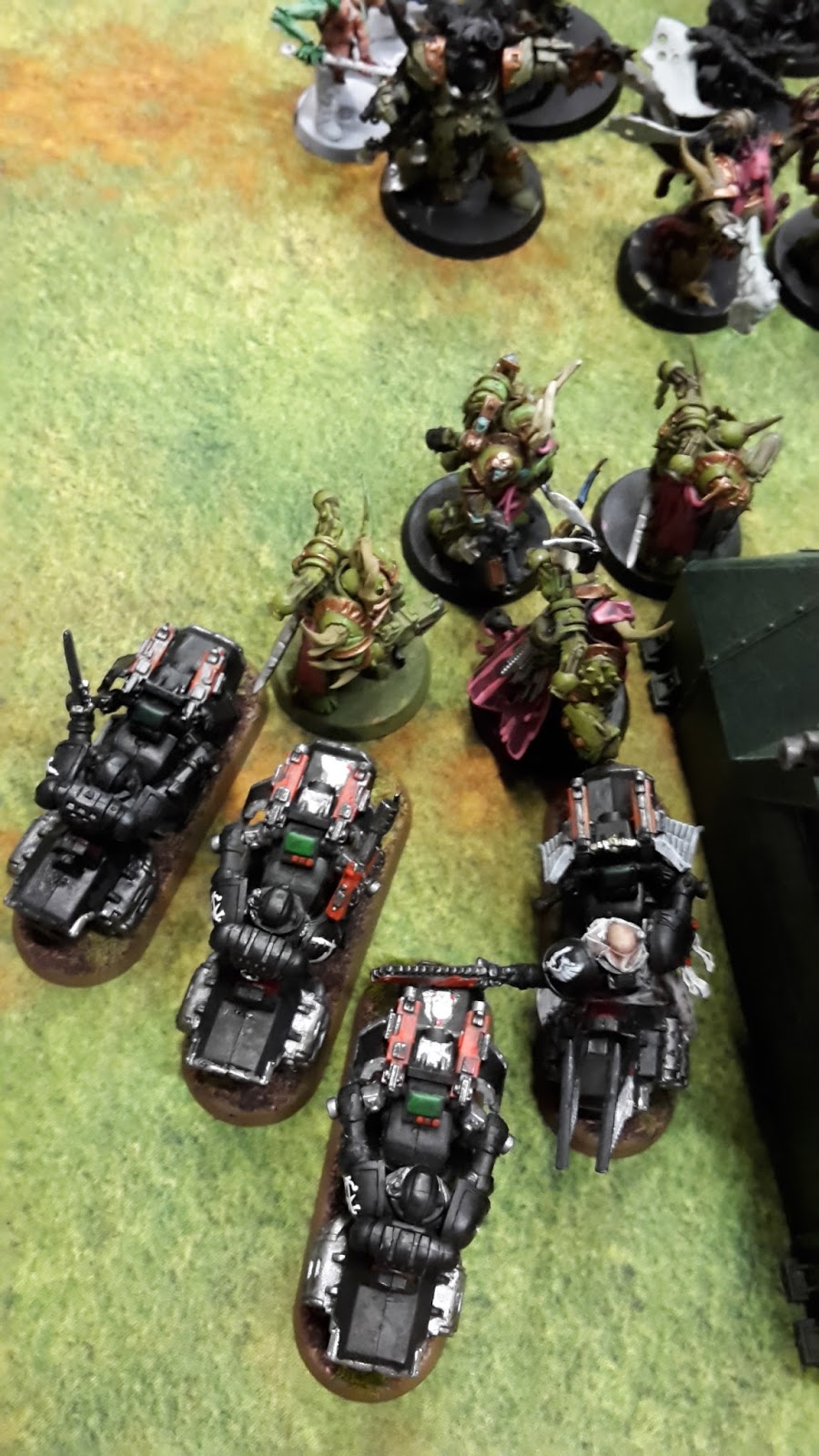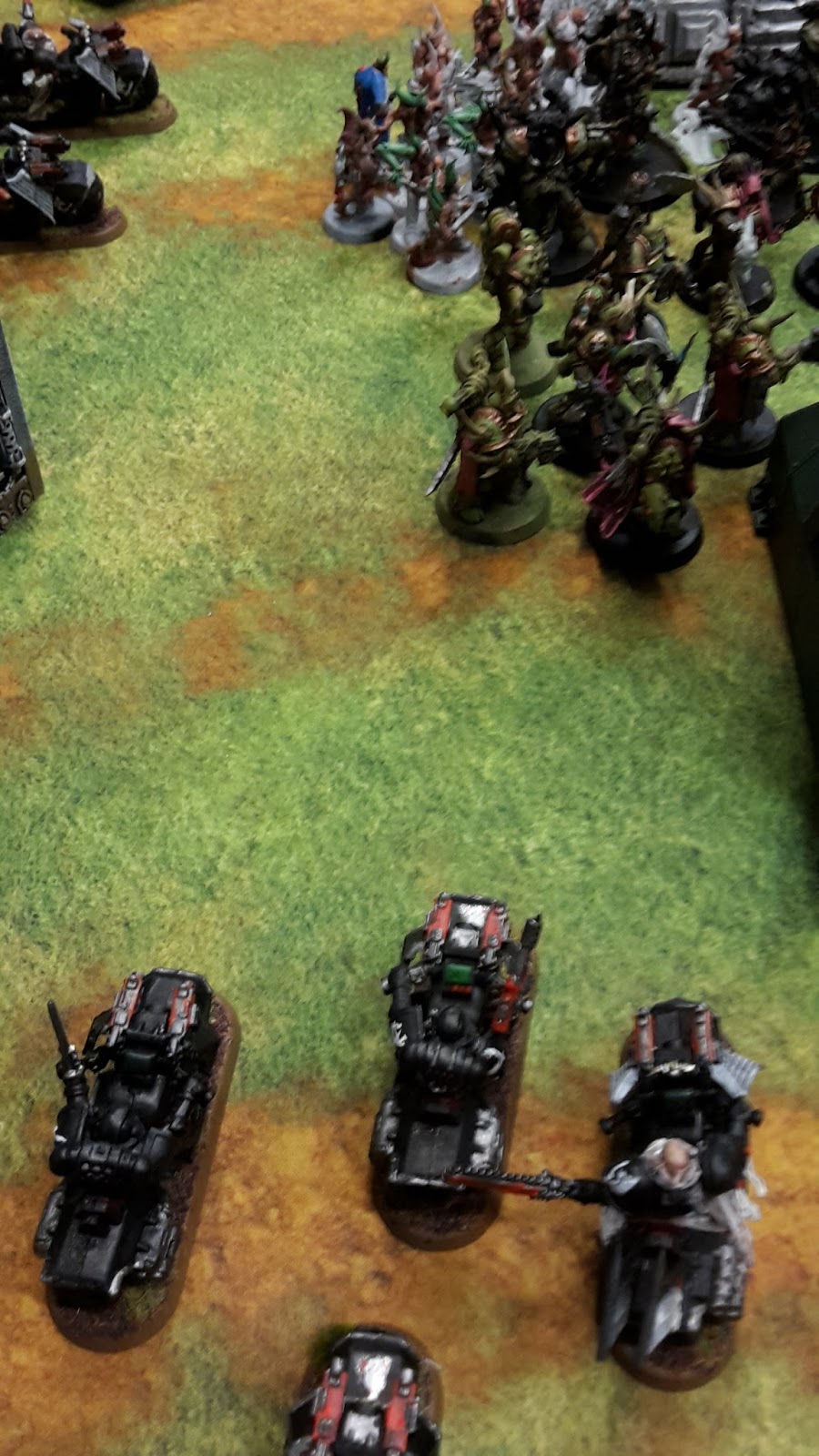 The Dark Talon moved up on the main Death Guard lines, while the two units of Bikers on the right stayed in position.