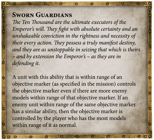 Gaming concept wise, they’re the old “new emperor’s finest faction”, like grey knights and imperial knights were at their times. Rules wise, they’re slightly different assault centurions, with more rules.