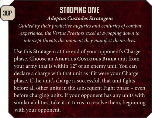 Wisdom of the Ancients, deepstriking, and ObSec by another name are all stuff we’ve seen everywhere before. The biker stratagem is expensive but deadly.
