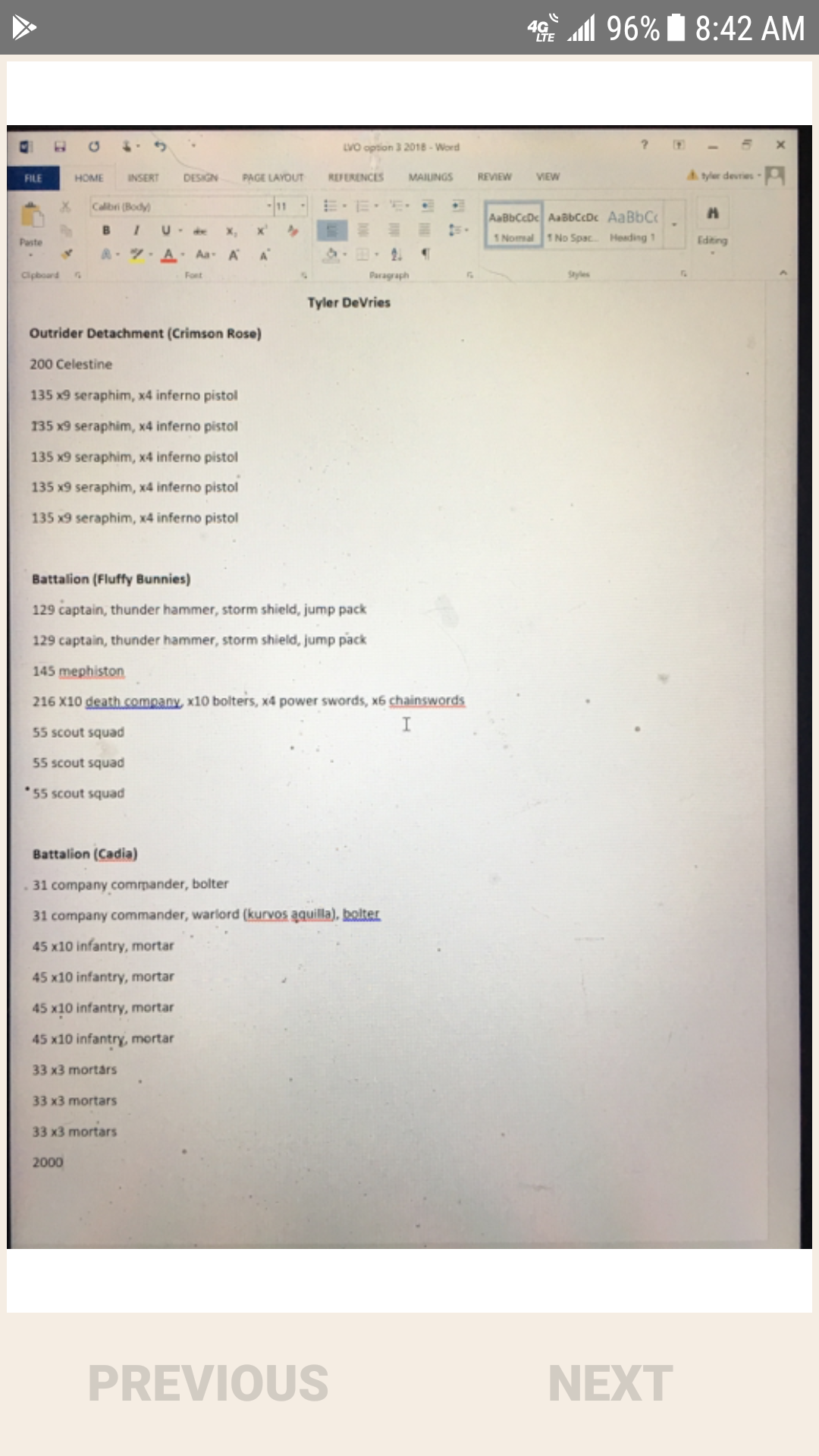 - Tyler Devries: The 3rd place seed (I promise I’m not going in order on purpose!) Tyler is taking sisters to an entirely new level. Specifically to levels that only having a Guard, and Blood Angels detachment will give you. Tyler is a phenomenal player and is running the kind of list that put him in contention for the ITC championship.