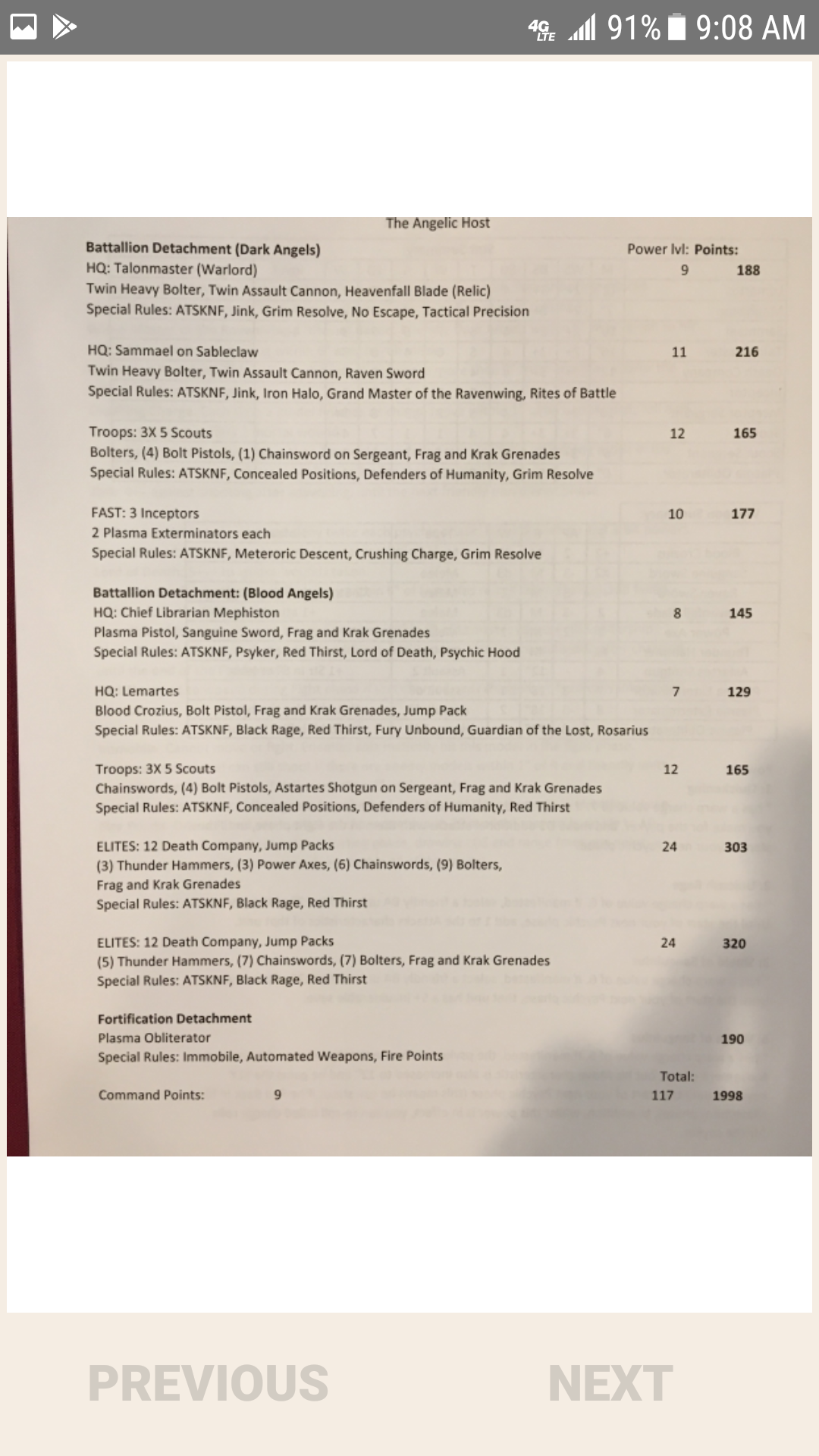 The only really surprising list is the pure blood angels