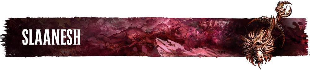 Delightful agonies. Slaanesh focuses on speed. With the ability to advance and charge with every unit 6” from a character in a mono-Slaanesh detachment, Slaanesh unit can fly across the field in short order and be in your opponents face by the end of turn one.