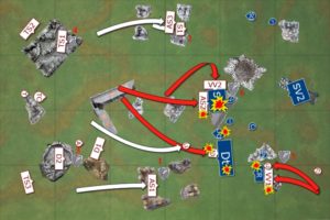 My plan was to assault the Robots and Destroyers. Even if I couldn’t destroy them, I could shut down their firepower for at least a turn to allow my other assault units time to move up the board.