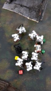 Finally, the backfield Vanguard squad fired at the Assault Marines on the right flank, killing one of the squad.