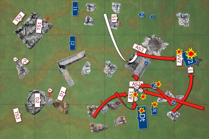 My plan was to assault the Robots and Destroyers. Even if I couldn’t destroy them, I could shut down their firepower for at least a turn to allow my other assault units time to move up the board.
