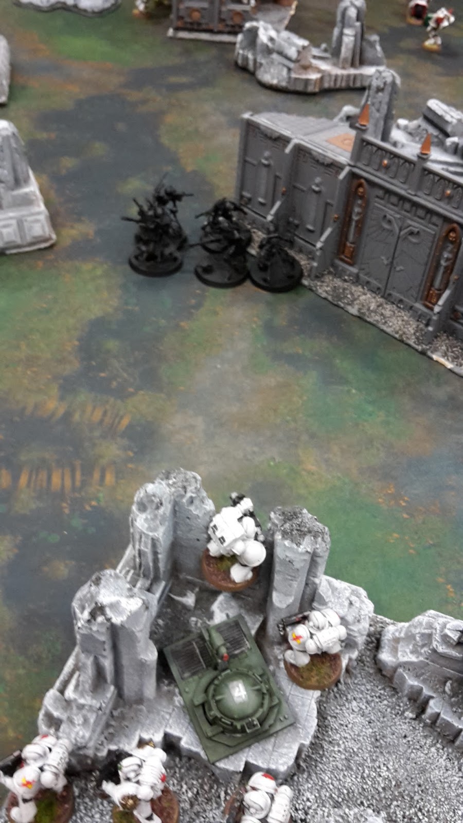 The Assault Squad moved to secure the objective. The Librarian cast Smite, killing the Datasmith.