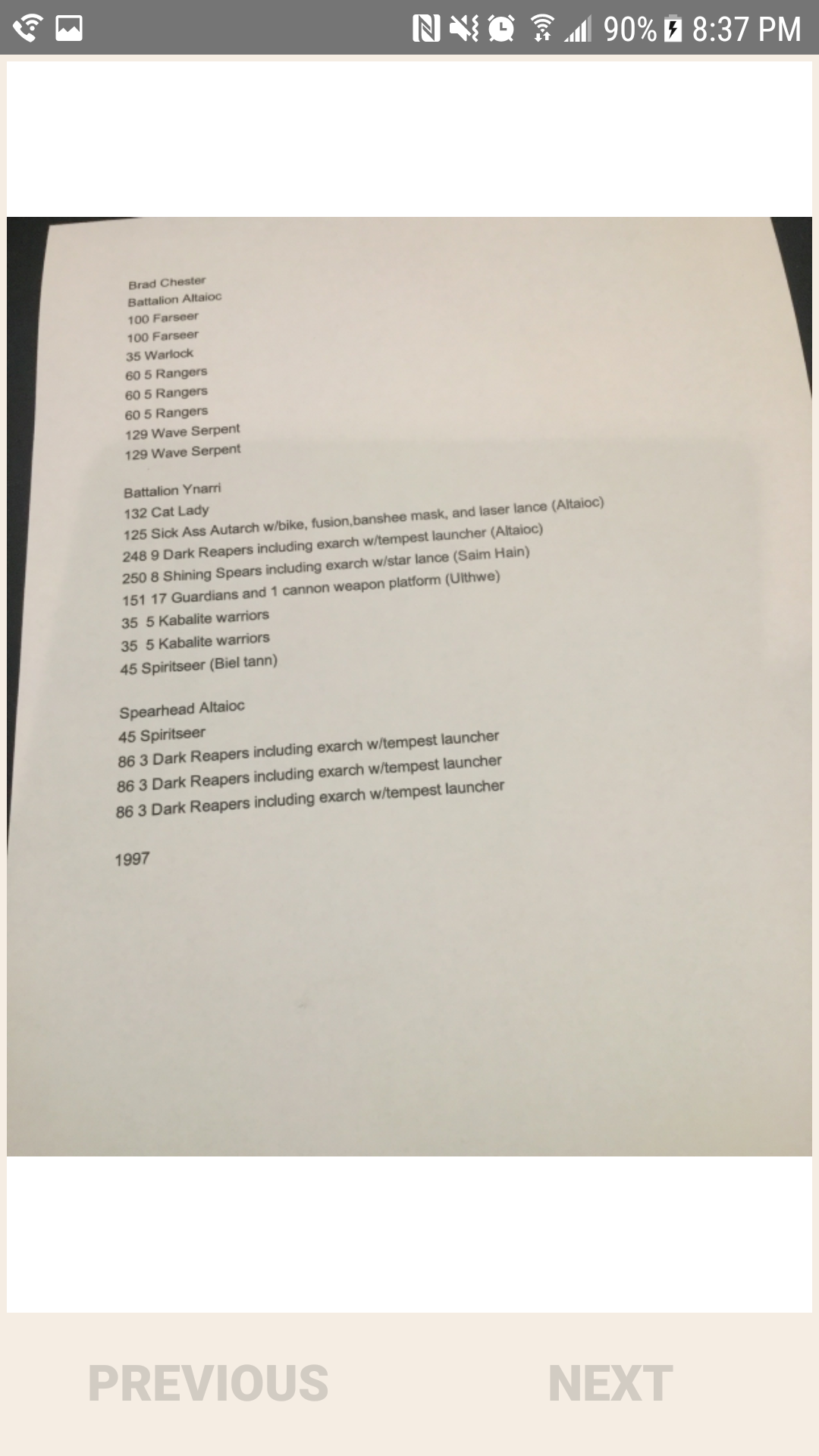 Um; I just want to point out that Brad Chester’s list is not an “Aeldari” list. It is a Ynnari list as the faction is determined by the most common specific faction keyword in the detachment with the largest points. In this case, its Brad’s Ynnari detachment. While all those units have the “Aeldari” faction keyword as well, the more specific faction keyword is Ynnari. It would be like calling an Ultramarine detachment an “Imperial” detachment.