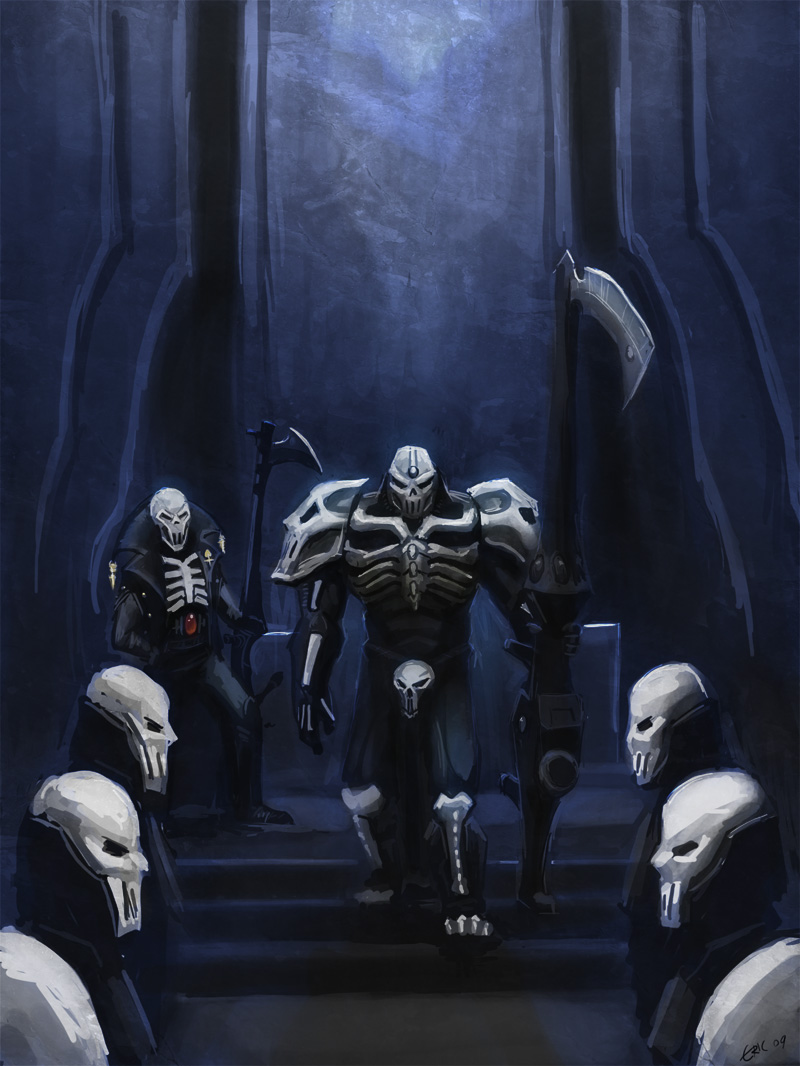 Maugan Ra can also be surprisingly mobile when needed; while it’s easy to think of him as Big Daddy Reaper, he is actually pretty speedy on the ground. Though he is slightly slower than other Craftworlds characters (due to M6″), he can still cover ~10″ of ground on an average turn, which is more than most people will expect. While he might spend most of the game sitting back with his creepy goth friends, don’t be afraid to send him skipping up the table to claim an objective, shoot from a better vantage point, or otherwise get some use out of his speed- the 6″ bubble on his aura is pretty big and it’s not too hard to string out one or two models to stay inside it, even when he moves away.