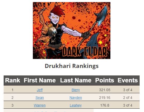 Drukhari have one of the newest codices right now. They have some great players in their top 3 and several very notable players looking into making a run at the title with the new book out. Anthony O’Dell is currently out for this ITC season with his new job overseas but he has been making a name for himself playing Dhrukhari for several seasons now, including being one of the few to take them to this past LVO and doing well with them. Tony Myers is another fantastic player who owns Hammerhead Games, they make those awesome wood carrying trays and various awesome templates, tokens, counters, and markers for use in a lot of games, not just 40k. If you read these articles you will also recognize Aurelio Correa’s name, currently tearing it up in the Florida scene. I asked these three for their thoughts on the Dhrukhari book because Dark Eldar, as I grew up with them, are one of the few armies I have never played.