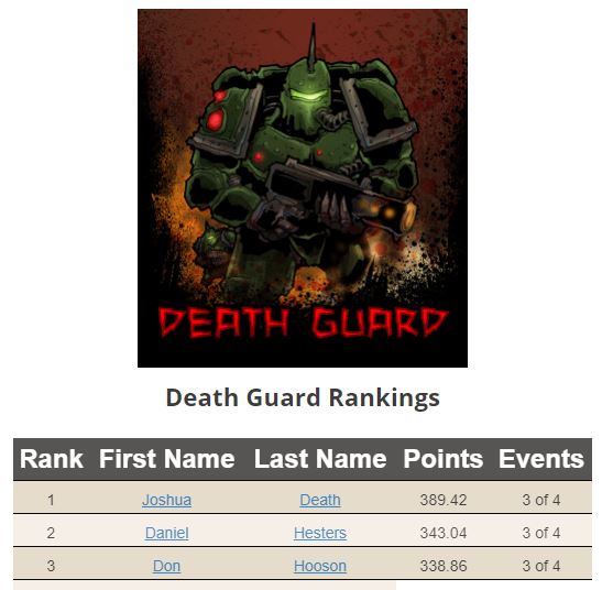 I was wondering if in a future articles you could shed some light on what is going on with some of the apparent scoring discrepancies in the faction rankings. Using Astra Militarum as an example, the top player’s scores appear to correct but for players 2-4 the total listed at https://www.bestcoastpairings.com/bcpplayers?league=EDE6GOXNvc&faction=N9IViEnkWo&embed=true does not match the individual players’ scores. It is also a little odd in that for the 2nd and 3rd ranked players it is allowing them to use 4 RTT scores but then enforcing the requirement that one of the 4 faction scores be a major for the 5th ranked player. Then in some cases (i.e. https://www.bestcoastpairings.com/bcpuser/6Lgf77v14M?league=EDE6GOXNvc&embed=false) the ranking is only displaying incomplete data.