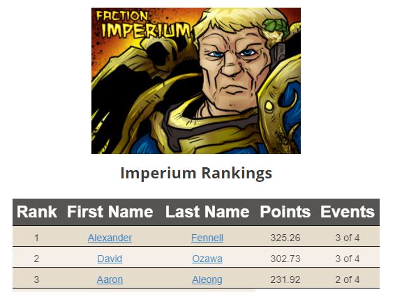 Thank you for the update Reese. I am curious as to how that is being enforced with some of the Astra Militarum players I referenced. As an example, here are the #2 and #3 players at this time: