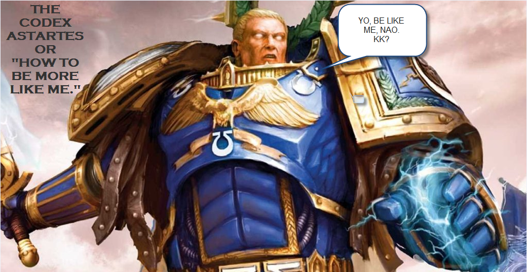So, Roboute and his merry band of Ultra Marines from the Realm of Ultramar (c wut they did thar) were enjoined and went forth in the name of the Emperor, and the Imperium, and through millennia of war and strife, consistently showed their battle prowess, courage, honor, and military superiority. In short, until more sound writers grabbed hold of the running narrative, complete Mary Sue-ness.