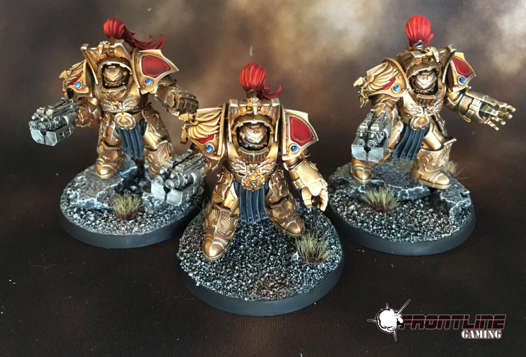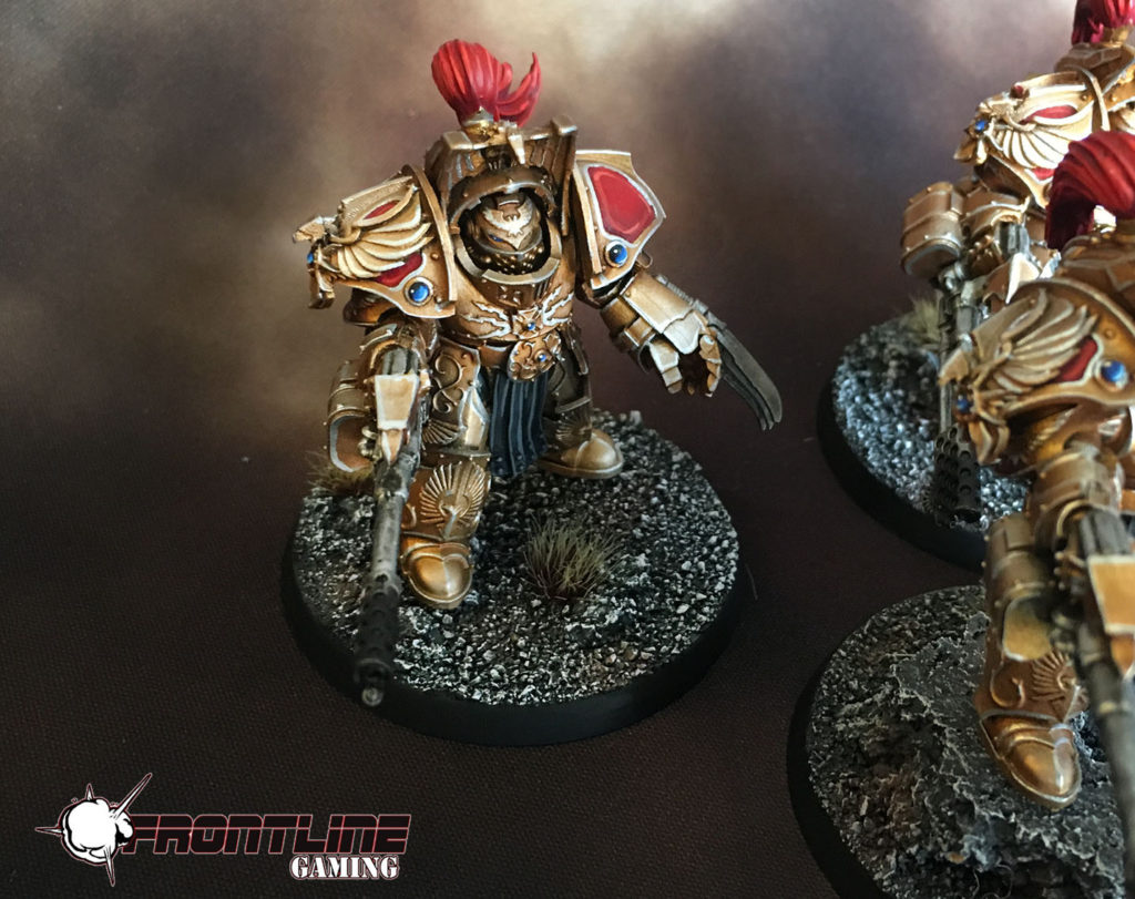 These Adeptus Custodes were recently completed by the FLG Paint Studio.