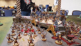 At the end of it all I placed 67th of out 164 (total players after drops) and while it keeps me at the mid-table hero level I am happy to say I placed higher percentage-wise this year than last year. I am also very happy with how my army performed. The Witch Aelves are brutal in combat and Kraith really worked well for them and caused a good bit of fear for my opponents. I plan to continue running a Witch Aelf Horde for quite some time with the only change is give command of my army to a Slaughter Queen as opposed to Morathi. She is targeted to quickly and while I wanted her command ability to be a great force multiplier she was either dead or transformed before it became effective in combat. The army is an absolute blast to play and I was happy to see other Daughters of Khaine out in force at the event. I can imagine everyone will be seeing much more of them in the coming months!