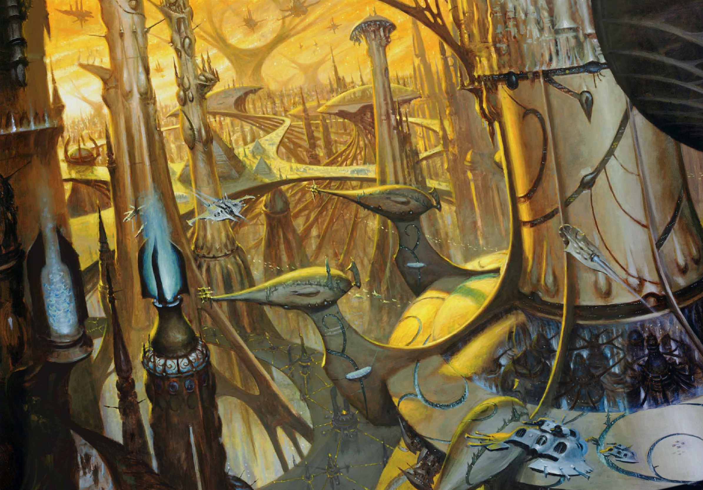 Reveling in decadence, lasciviousness, and excess, the Eldar grew a taste for depravity. In the heart of their empire, no act was too heinous and no line went uncrossed in their search for new sensations in their boredom. Some among them saw the dangers of such an attitude, and the catastrophe it would bring. These were but a scant few, who took to their star-faring cities known as craftworlds to flee the central systems and escape the coming calamity. Others forsook their kin and much of their technology, living with saurian creatures on the remnant shrine worlds of their old empire. These are called the Exodites, and they are hostile even to intruders of their own kind.