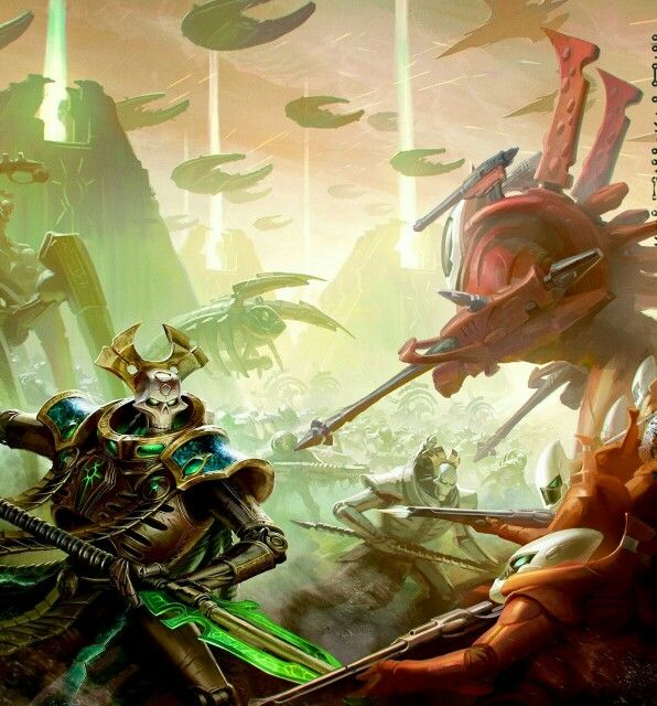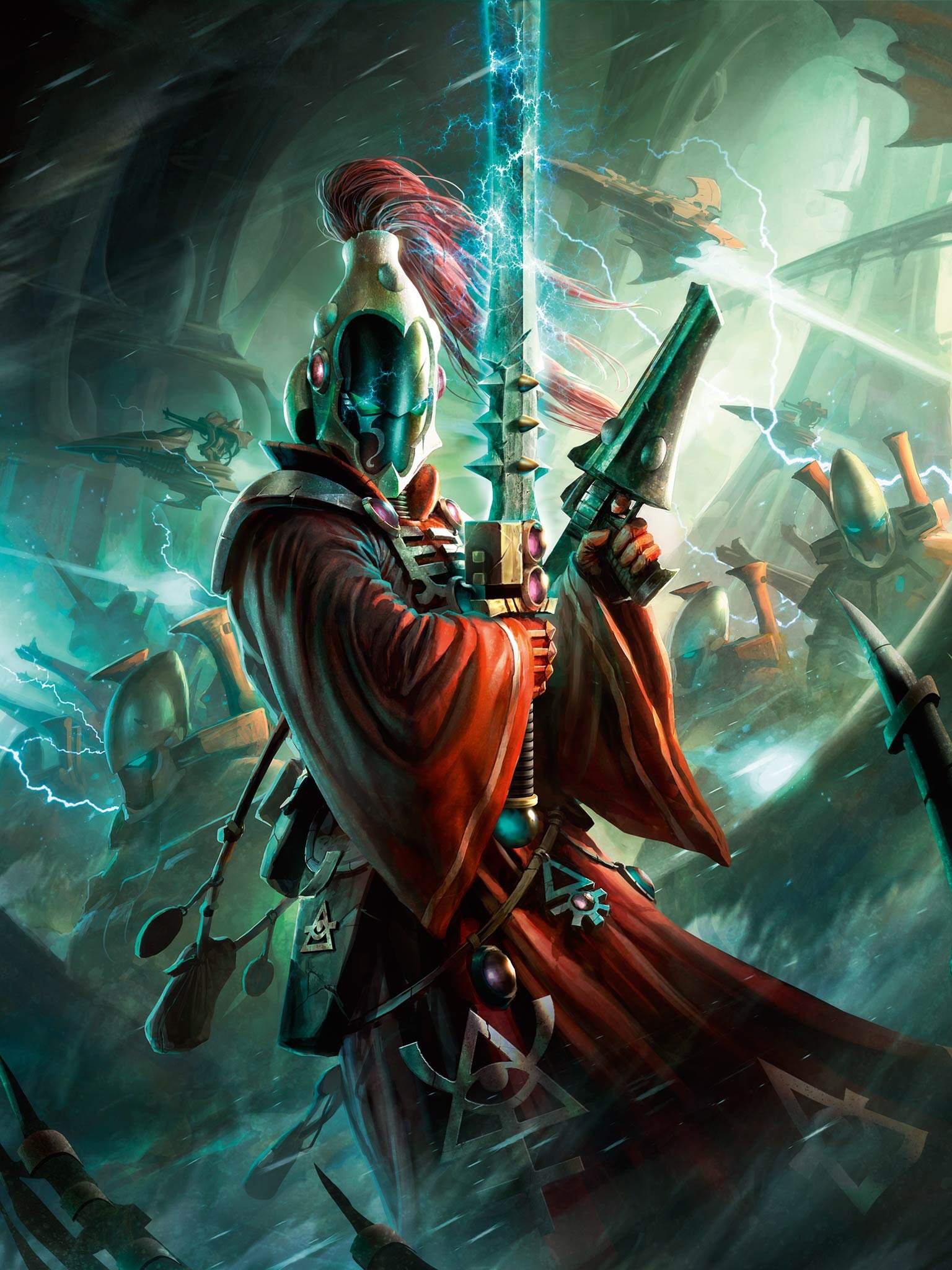 The wars against the Necrons were long and vicious. After their titanic conflicts among the stars that saw the very fabric of reality sundered, slowly the Necrons began to disappear. Eventually with their nemesis unknowingly in slumber, the Eldar began in their newfound mastery of the cosmos. The Eldar rose to rule the galaxy in a vast, technologically-advanced empire among their powerful pantheon of capricious gods. Their powerful technology merged with their psychic mastery and the stars themselves bent to their will. With no more worthy enemies to fight, they turned their focus inwards and over time became obsessed with pushing their emotions and passions to the extreme. This was the flaw that would ultimately lead to their downfall.