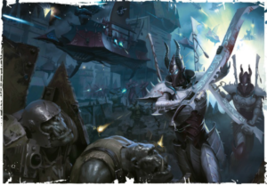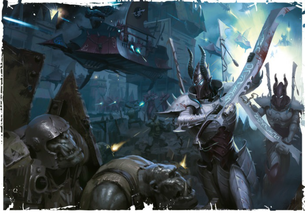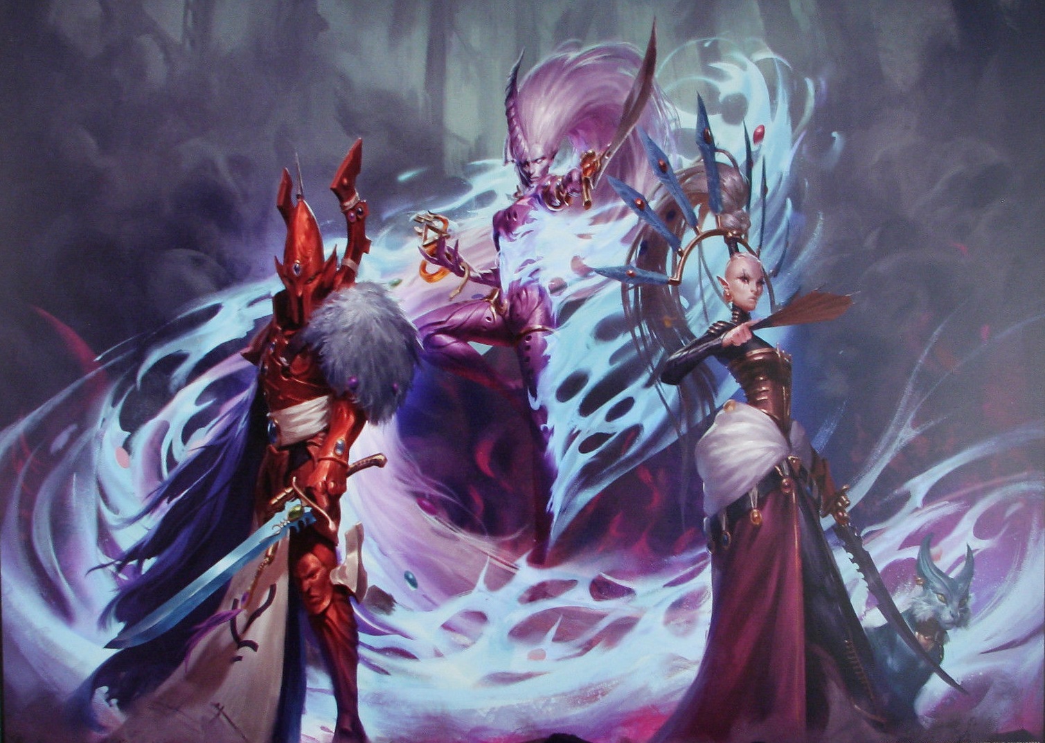 The remnants of the hedonistic Eldar hid in the webway, a pathway through the galaxy that existed between the warp and reality, establishing a dark city in its depths. These did not wear soulstones, but instead feed off of the souls of those who they torture and kill, keeping their souls topped off from Slaanesh’s slow drain through the pain they inflict on others. They maintain the worst traditions that once doomed their kind, ignoring the lessons of their fall in the pursuit of their passions which are now fueled by a desire for power and survival. None are safe from their predations.