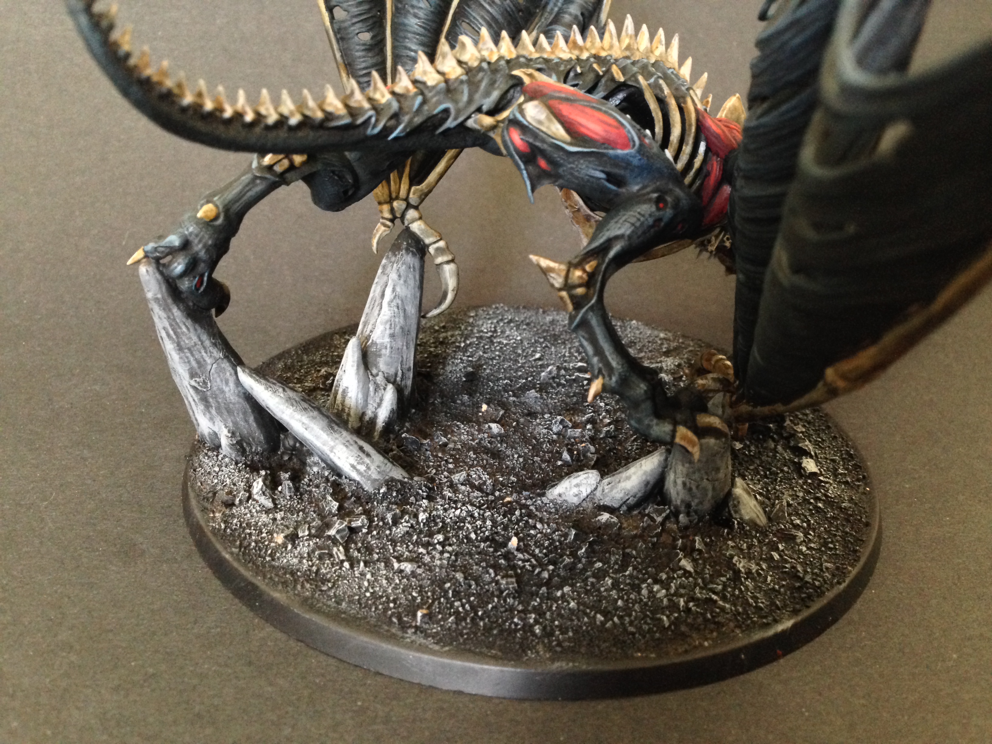 Step 10: Here is the final step, highlight the base! I just do a quick drybrush of Dawnstone and finally old friend Celestra Grey on the rocky wasteland upon which the Terrorgheist is perched and with that we call it a day!