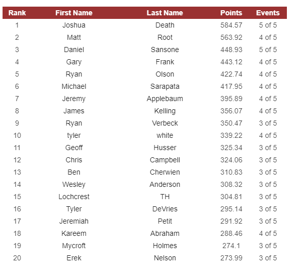 The Mid West continues to be dominated by Josh Death and Matt Root. It is going to take quite a bit of work to dislodge them but Daniel Sansone and Gary Frank are hot on their heels. Daniel Sansone is currently ranked 9th overall in the ITC and Gary Frank is just behind him, meaning the Mid West represents the region with perhaps the best chance of having a player from it take home the overall ITC championship this year. With so much talent knocking on the door of the top spots, and so many events, big events to boot, being played and won by their competitors the Mid West is certainly pumping out potential champions at an alarming rate.