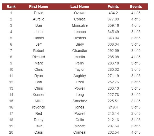 Excellent as always. Keep em coming! I wonder if there’s a way to count number of GTs/events in each region? I know the south has had only one GT so far this year, hence our low number of 4 event players, but there are more coming soon.