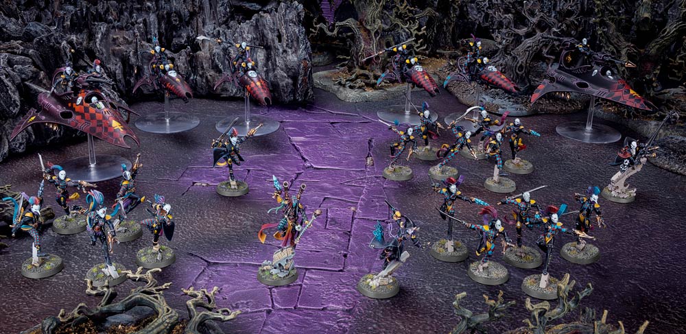 I would build this army one unit at a time, starting with a single Troupe. The Codex gives a great example of a fully painted Troupe and then, on the next page, an example of a fleshed-out Masque. You may even want to use your first Troupe in a game or two of Shadow War: Armageddon (or whatever flavour of skirmish 40k you prefer).