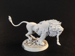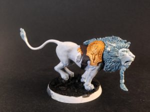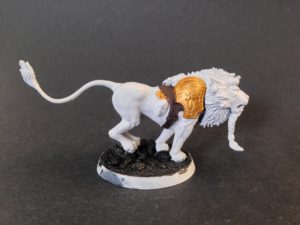Now the model I’ll be showing is the matching lion to the one pictured above. So simply begin by priming the model Corax White.