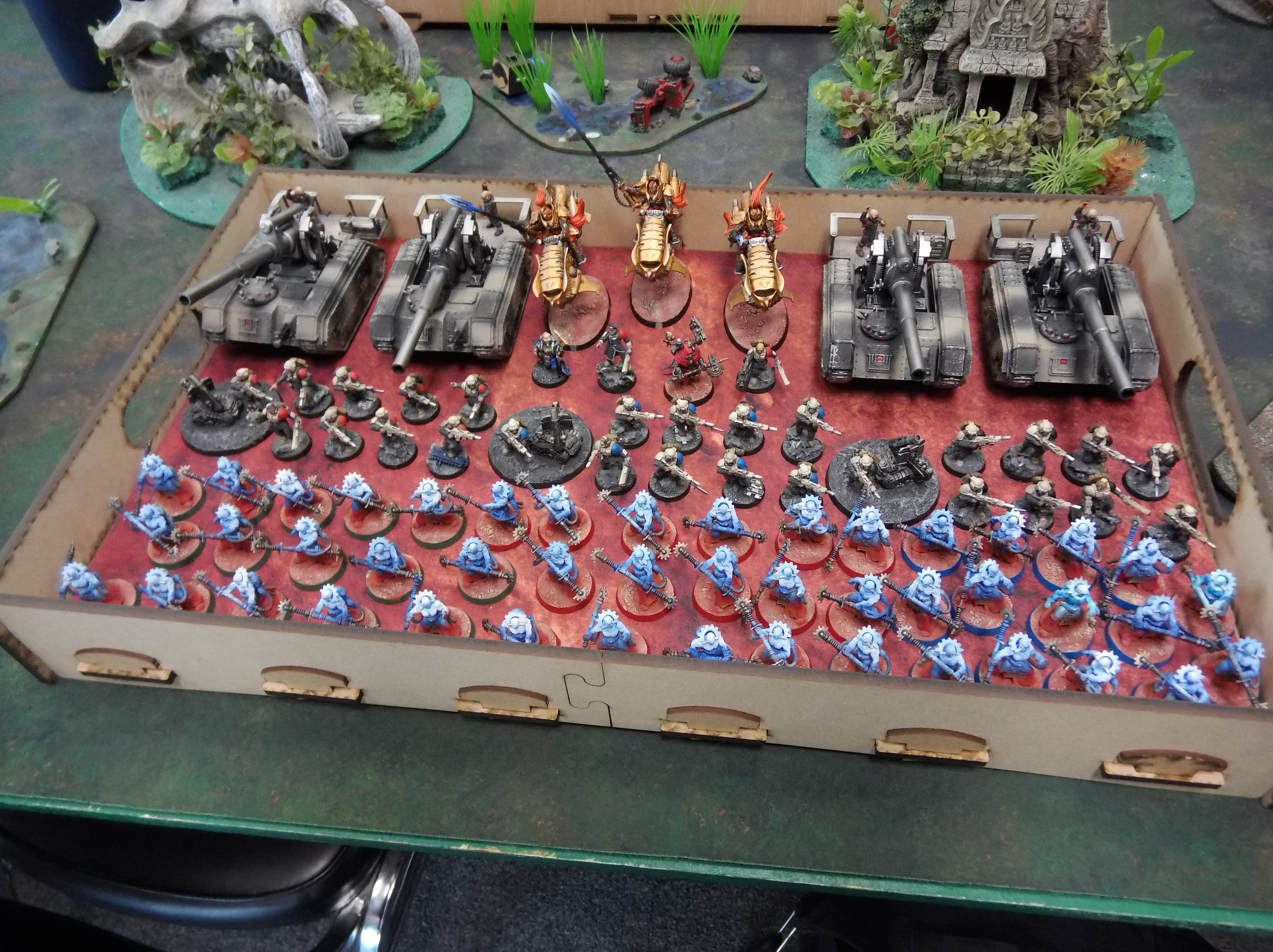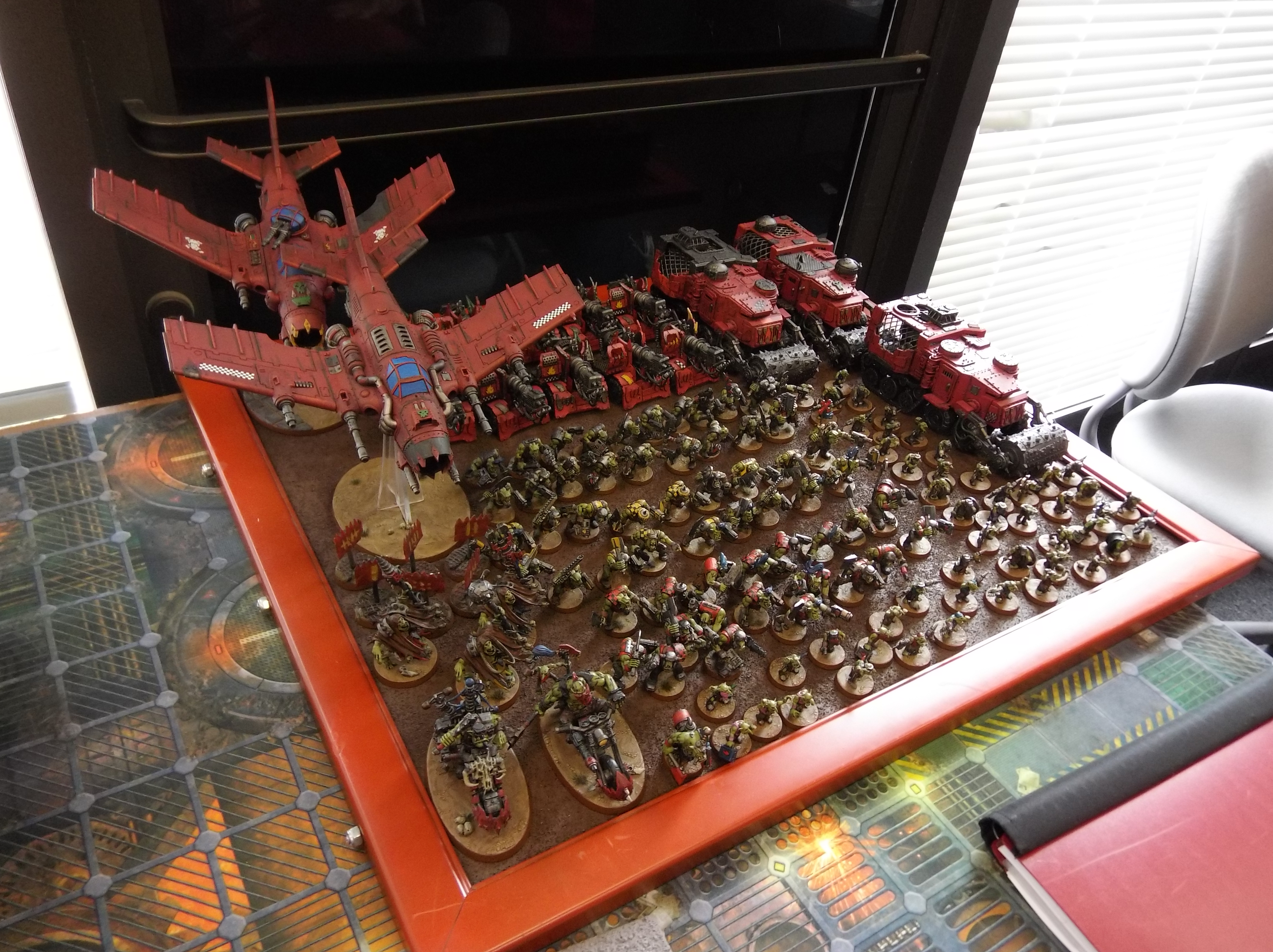I had a Aux detachment with a tallarn shadow sword, a battalion with 3 guard squads, 2 primaris psykers, 8 artemia hellhounds, a blood angels battalion with CC scouts, Slamguinius a libby with a jump pack and a Company Champion