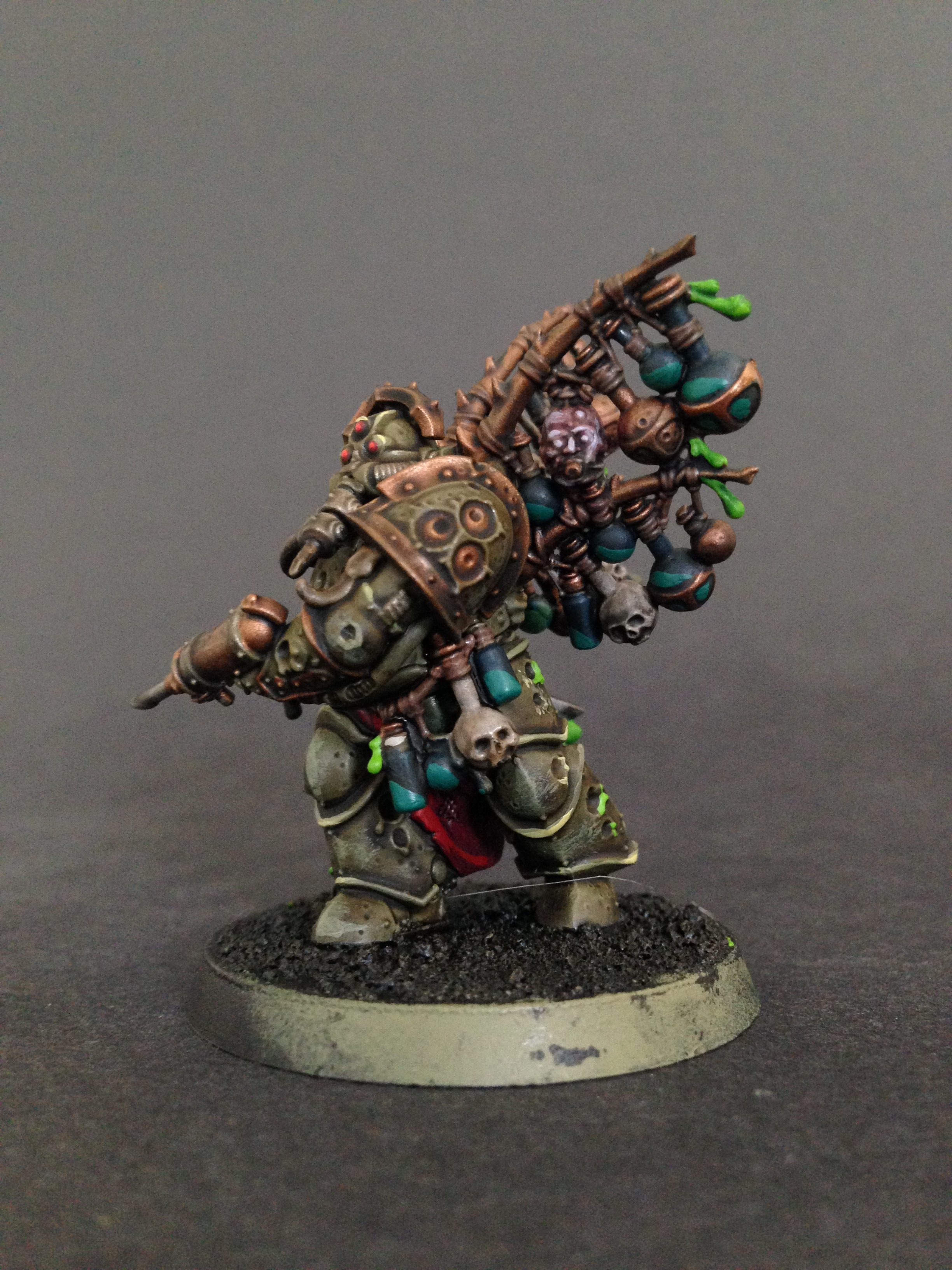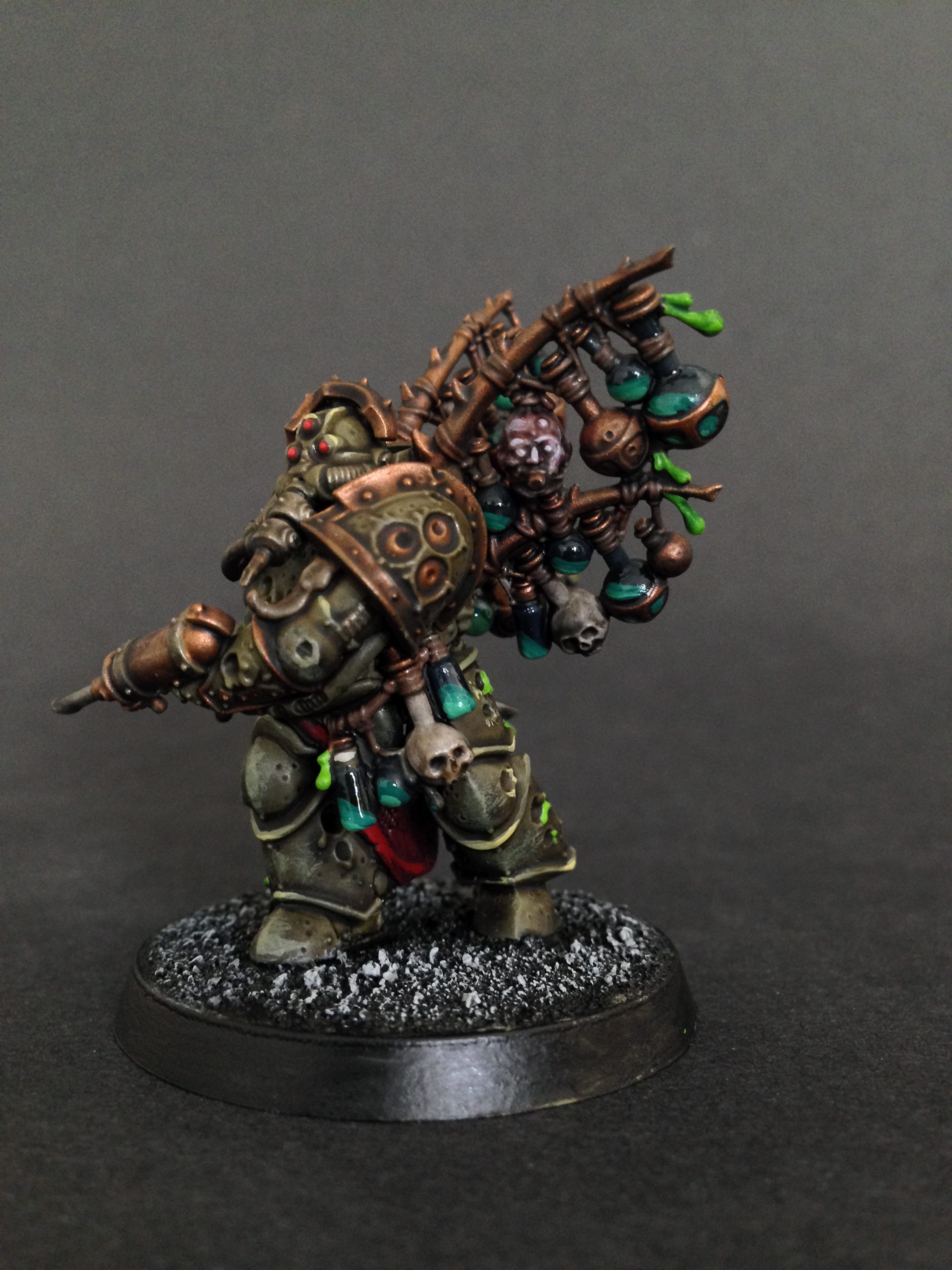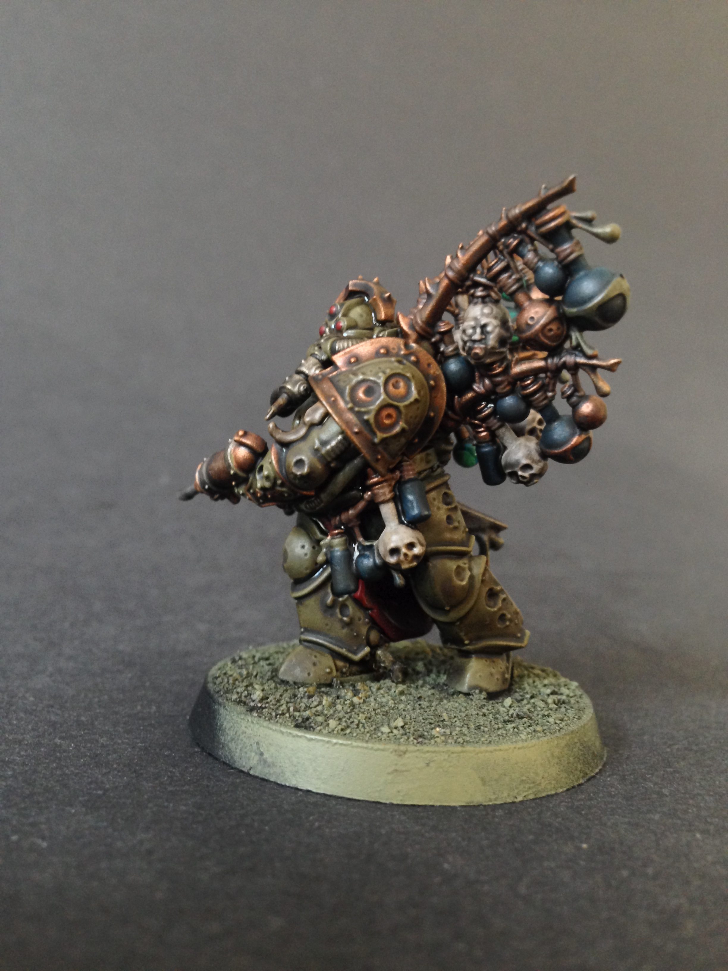 So for this project we’ll be looking at the Biologus Putrifier a great new model for Death Guard. Now as you can see below the model is nearly complete, so I wont be going over how I got to this stage. If you are looking for a tutorial on how I paint Death Guard in general, refer back to this article my Single Highlight Death Guard Tutorial. This is more about fine detail work.