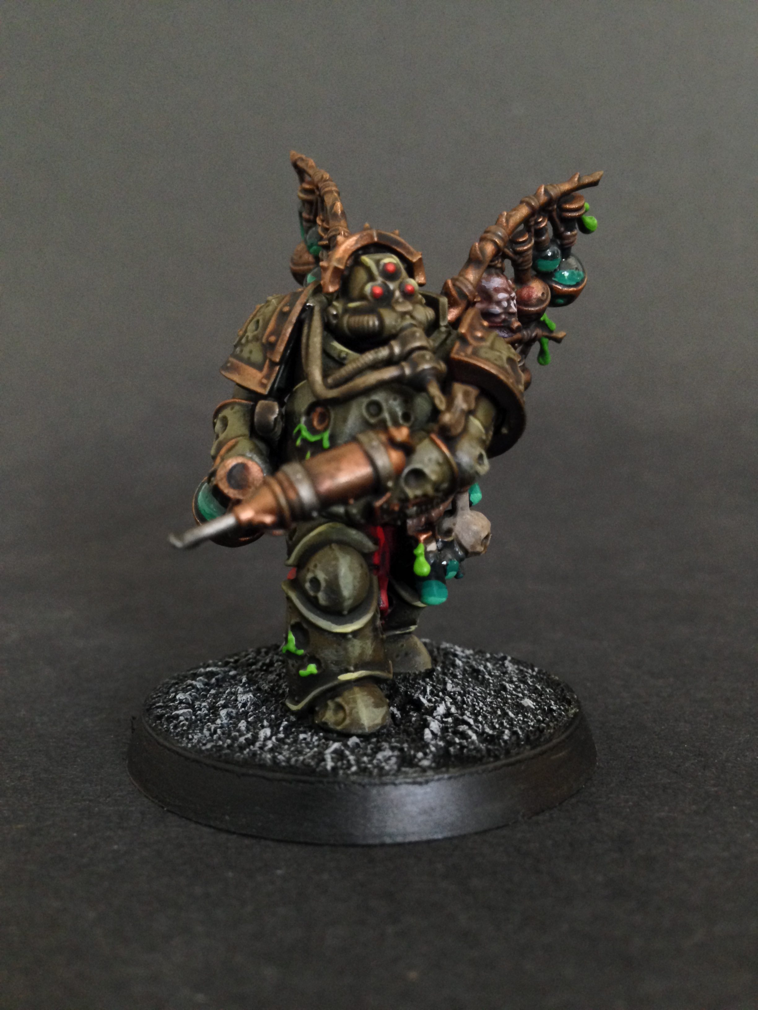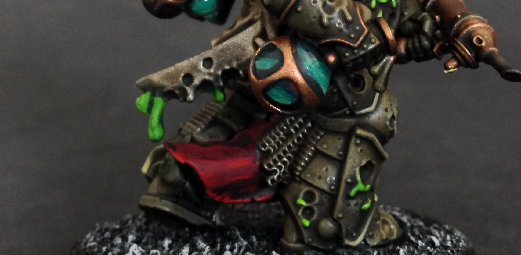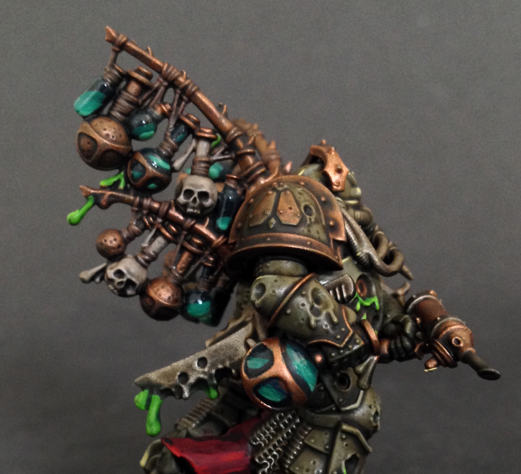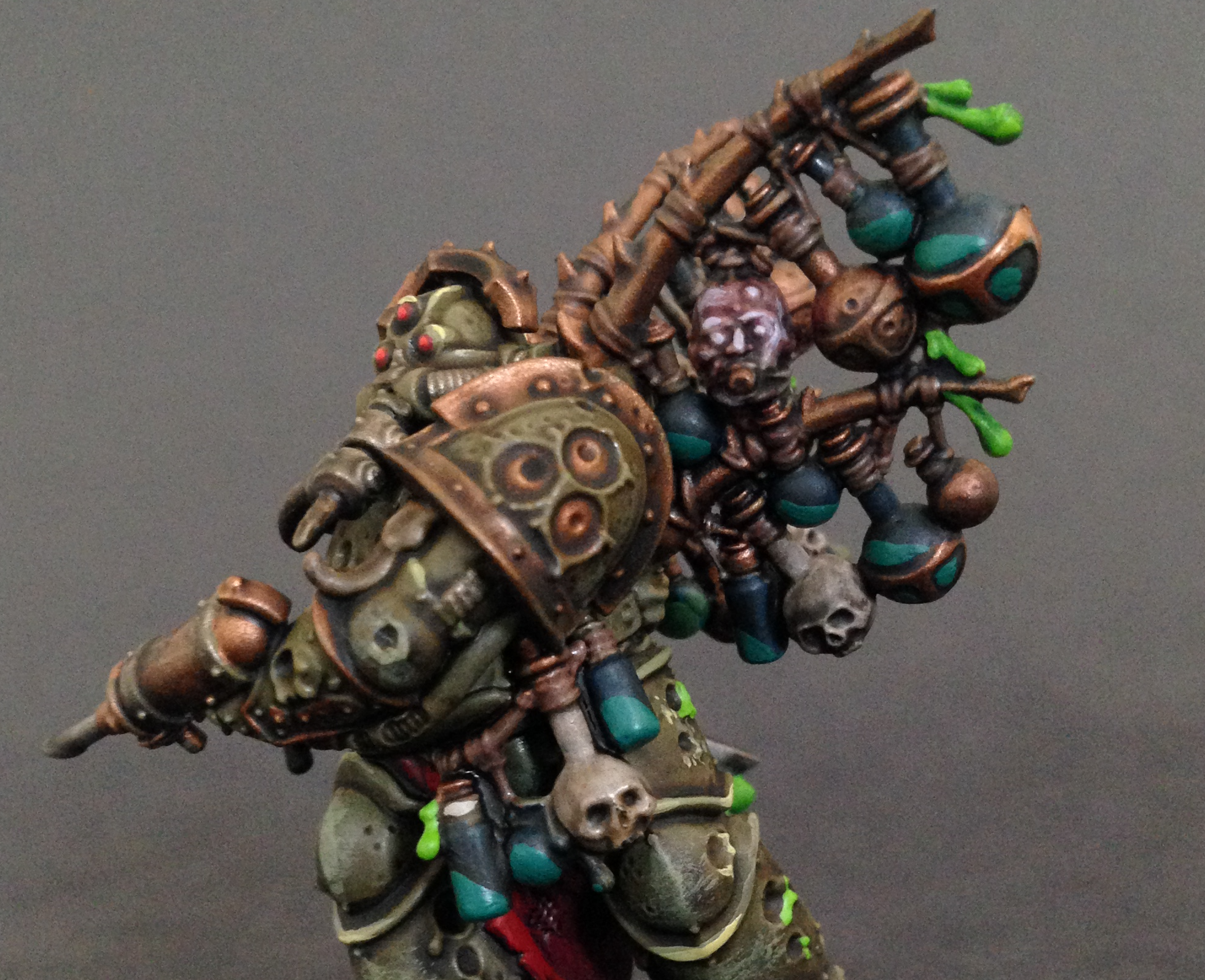So for this project we’ll be looking at the Biologus Putrifier a great new model for Death Guard. Now as you can see below the model is nearly complete, so I wont be going over how I got to this stage. If you are looking for a tutorial on how I paint Death Guard in general, refer back to this article my Single Highlight Death Guard Tutorial. This is more about fine detail work.