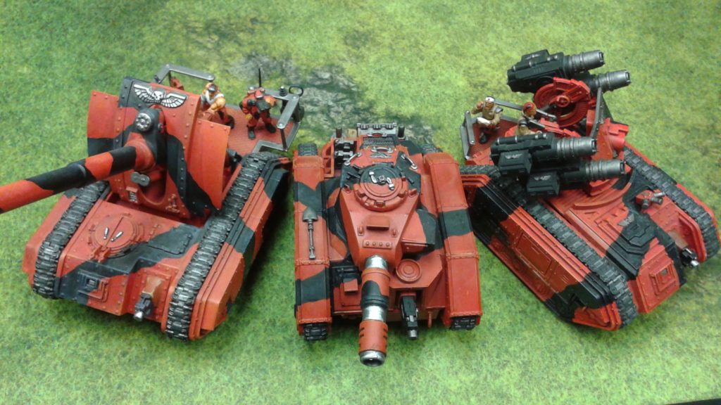 I was very happy with the tanks. Every game and they often ended up doing a lot of damage. The mix between the high strength/high AP Basilisk and low AP and strength but high volume of re-roll wound firepower of the Wyvern gave me a lot of flexibility. The Wyvern was excellent for smoking infantry units that sat on objectives or for T7 or lower multi-wound targets with a 3+ or worse save as the re-rolls to wound and and buckets of dice it fires makes it good for piling damage on things. The ability to re-roll misses on either with Aerial Spotters is the key, as if you have to shoot with a -1 to hit, this gives you dramatically better odds to actually land hits. or, if you just really need to kill a target, hitting with 75% accuracy is great. The Russ was solid for splitting the middle between the two with potentially re-roll misses on his Battle Cannon and just a lot of D3 damage shots. I could see subbing in a Manticore as the 2D6 shots is great, so that is a consideration as well.
