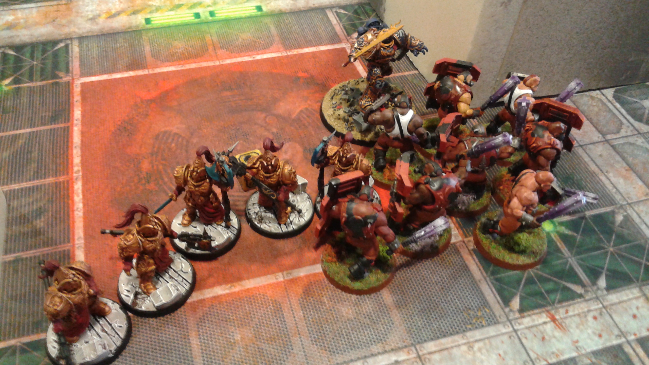 I deployed in a phalanx style formation with the Conscripts in the front and the Bullgryn behind them, supported by the Vexilor. And as you can see, the Scout Sentinels were lurking up in a corner to go for objectives later in the game.