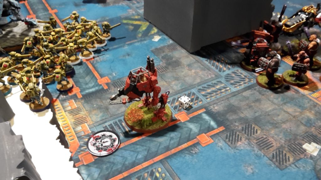 Had my opponent simply deployed further back, it would have allowed him to shoot the Shadowsword most of the game as he could have jammed me up with the Shield Captains one after the other, keeping my from getting to him. He would have sacrificed board position to do this and allowed me to get up on the scoreboard early but could have planned to come back in the later turns to make up that early deficit. That said, it was still a tough game and my opponent was extremely nice with a beautiful army. Best looking army I played at the event by a mile.