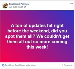 After last week’s 4000 word article that also resulted in a 20ish minute audio version, we are going to take this week a bit easy. Besides last week’s article having been massive there are a few other factors. First, not a whole lot has happened in the standings since last week and most of the changes I didn’t go over, like the team rankings, are minor changes and linked to the things like the Boise Cup Major (not GT, I got it right this time, see I read the comments!). Another factor is ATC, BAO, and a few regional GTs are rapidly approaching and I think those are going to shake things up further. A third factor, and a selfish one, is I am prepping to go to the Bay Area Open and so my time to do a deep dive article like last weeks is limited. Before going further I want to encourage you to head over to the Best Coast Pairings Facebook Page and Website to check out all the amazing new things they have in store for us with their App!