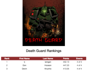 Back after a short break with a packed article! Last time I interviewed Josh Death, the second place player overall in the ITC, and this week I talked to the current number one and a former ITC champion Matt Root. In the last two weeks, a lot has gone on in the world of the ITC. With 4 Majors two weekends ago, including the ATC, and a GT a lot of movement was expected on a few of the leaderboards but not much materialized. The Necron leaderboard for example still has Chad Layton, Jessica Bowman, and Red Powell separated by only 13 points between all 3. Many of the races for faction have ratcheted up, but with a lot of the same names involved. I predicted the last few weeks that one of the more interesting things to watch will be Imperial Knights and their effect on things. According to the Best Coast Pairings App, without which this would be a near impossible article to write each week, Imperial Knights are now the most represented faction at ITC events. The surge in popularity has created a shift in the meta for sure and a change in the Imperial Knights leaderboard, more on that later.