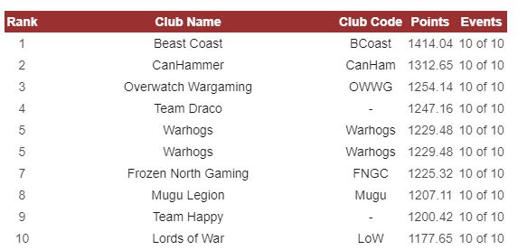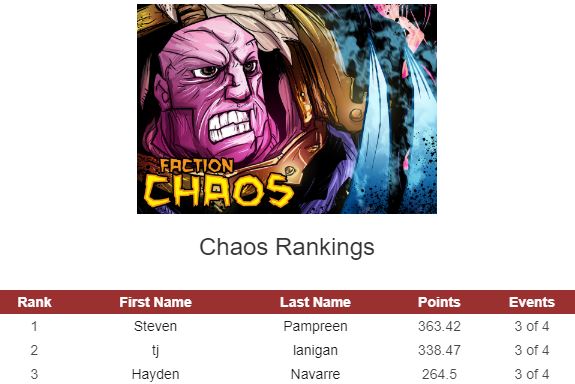 The biggest change in the top 10, if you’ve been following this since Adepticon, is that we have the first change in the top 2 since that time. Josh Death was knocked out of second by top 10 newcomer Mike Porter. With his 249.69 point win from the London GT with his Custodes in the system Mike jumps to just shy of Matt Root and the top of the heap! Geoff Robinson has dropped to 6th from 3rd and with him now being a Games Workshop caster for events I am not sure how much time he’ll have to try and get that top spot by season end. Another notable change is the appearance of Nick, Brown, Nanavati in 4th place knocking fellow Nick, Gower, out of that spot. John Lennon, Bruce Merker, TJ Lanigan, and Mitch Pelham all dropped out of the top ten. Archon Skari, if that’s his real name, joins the club in 9th and Trent Northington catapults into 5th. Trent is riding high on a 1st place showing at the Flying Monkey GT and Archon Skari, who surprisingly plays Drukhari, adds the TBMC GT and Capital City Bloodbath Major first placings to his scores getting him a total of 627.26 points and 5th place!