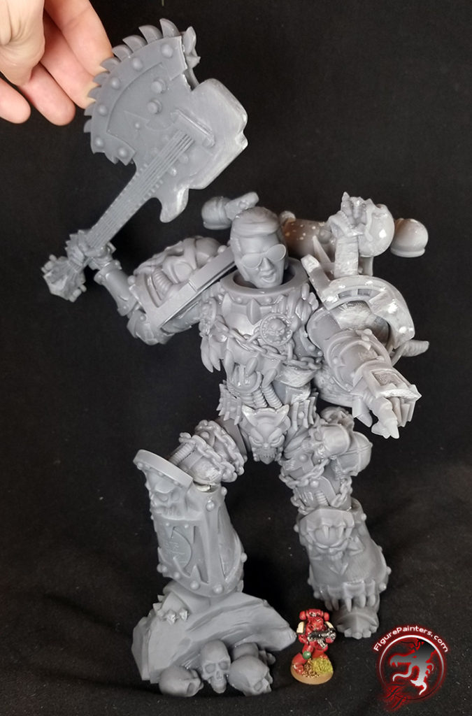 And all put together with a marine for scale. This thing is massive! It will be getting a red/gold Khorne color scheme paint job. I will update once I start getting some paint on it.