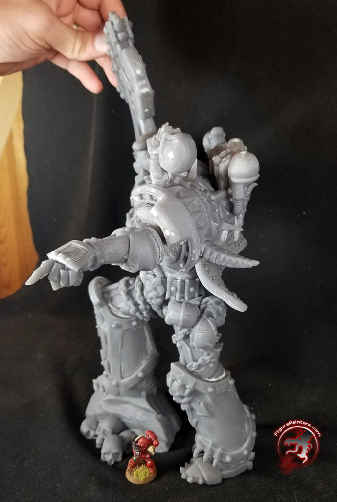 And all put together with a marine for scale. This thing is massive! It will be getting a red/gold Khorne color scheme paint job. I will update once I start getting some paint on it.