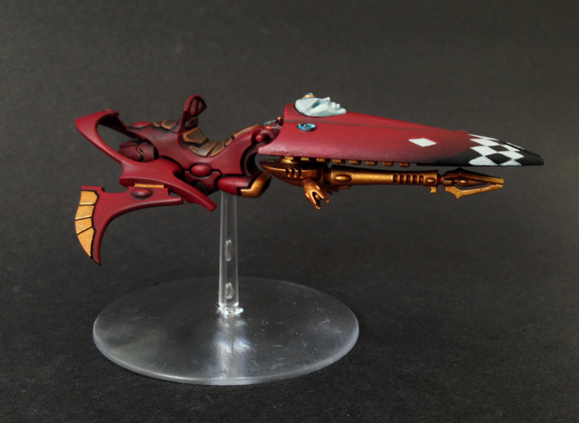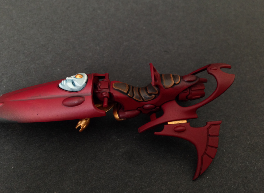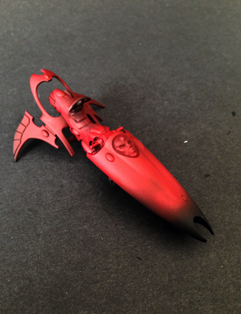 Harlie skyweavers are not only a critical unit on the tabletop but real showcase piece for your army in general. So when tackling them I really wanted them to shine. So my Masque of choice is the Penumbral Masque, a troupe of Harlequins loyal to the Y’nnari and Y’nnead. So to begin with I went with a Khorne Red fade using my airbrush on pure Chaos Black Primer.