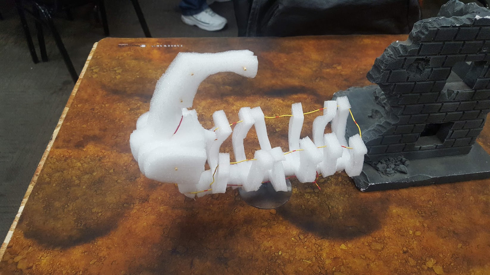 Buy a Necron DDA/Ghost Ark. Gigantic model, tiniest flight stand. I glued it in, put the model on the base. Snap. Twice in a row. So I greenstuffed it up.