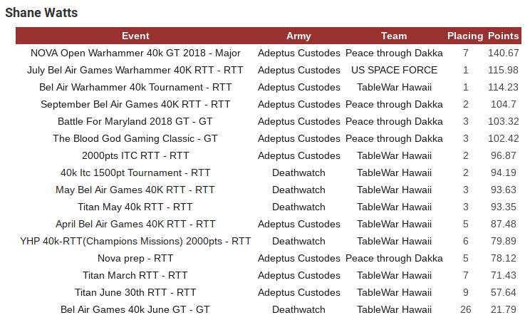 - Geoff fell out of the top 10 this week, but without the ability to play at NOVA because he was commentating for Warhammer TV that’s understandable. Geoff has been playing Custodes, for the most part, this year and with the nerf to Knights in the September FAQ it is definitely within reason that Custodes take a bounce back up the effectiveness tier. Custodes are a thinking man’s army, and Geoff has proven time and again this season that he can use that list with the deftness of a surgeon wielding a scalpel.