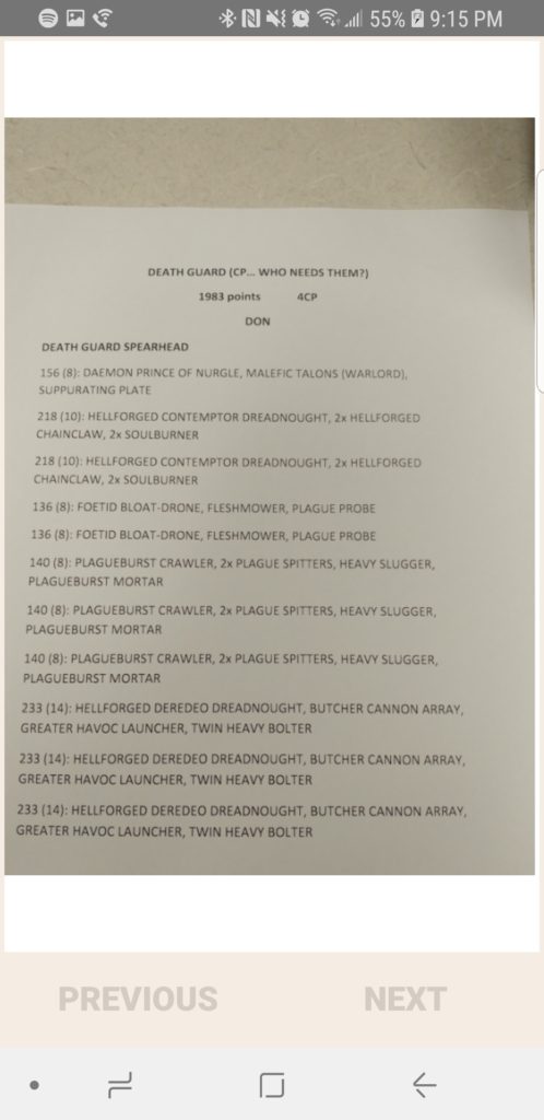 Sorry to dissapoint on not bringing knights. But i’lll be looking to see just how far i can get with a very unique deathwatch list. Already submitted to bcp for anyone who wants to check it out!
