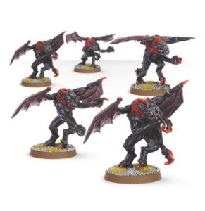 - Fragile flyers with 12” flamers (shocked face). Usually deepstrike (as they get shot off the board otherwise), flame and die. Got -3pts in CA. Buffs: Herald (going from S4 to S5 is pretty good as these guys wanna shoot something better than the screen. The herald can buff them with Flickering Flames (+1 to wound) meaning you’ll be wounding most things you want to shoot on a 2).
