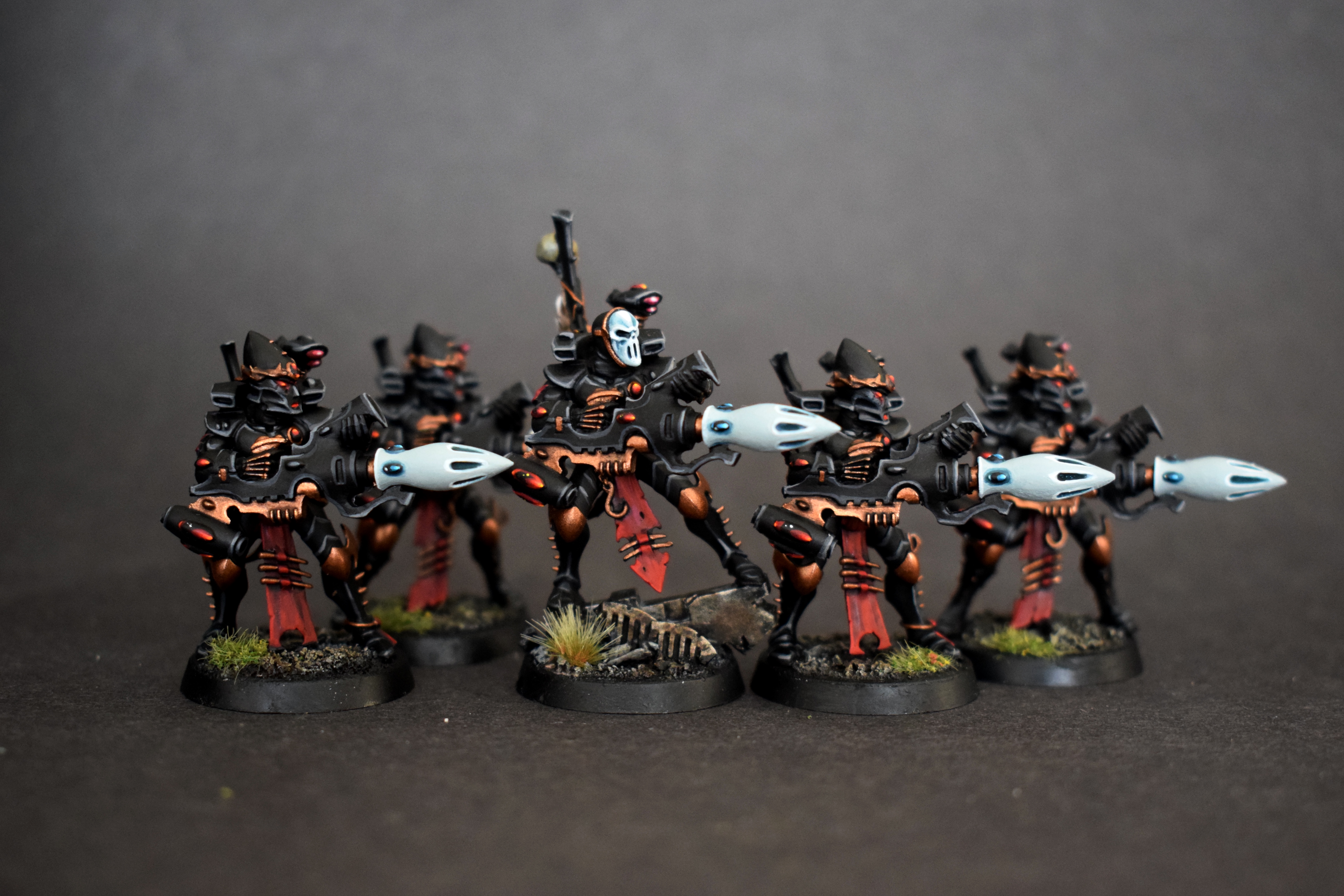 The regular Reapers are exactly the same except the heads which are the “Crown of Thorns” heads from the Kabalite Warrior kit. They are also painted the same as well.