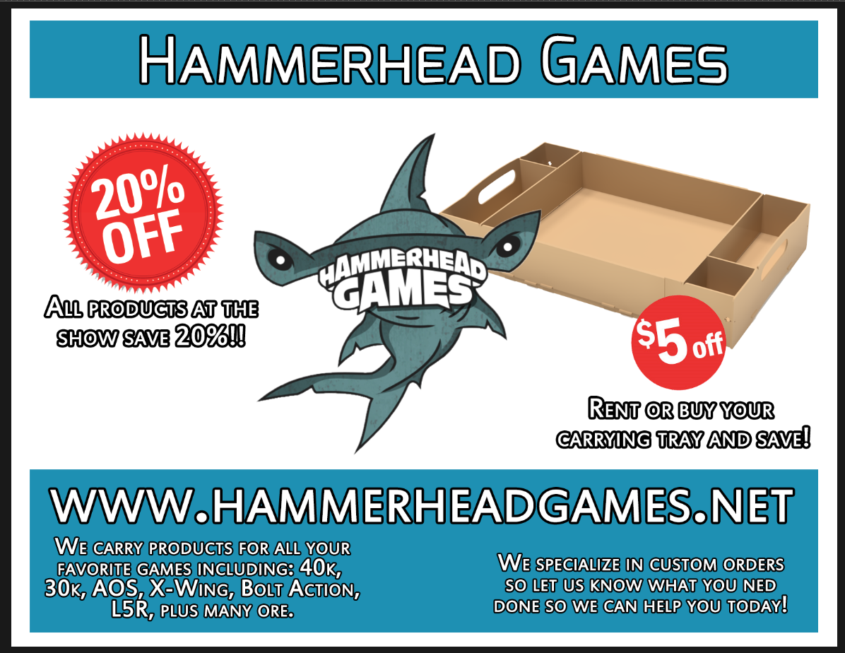 Broken Egg games will be in attendance to showcase and sell their tabletop gaming accessories. They make game accessories for almost every tabletop war game and card game in the industry!