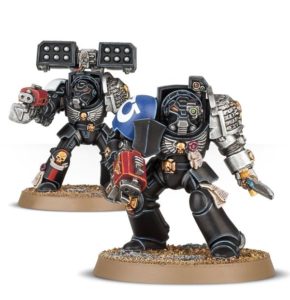 Another benefit is the Terminator’s 2+ armour save. You can use this to block wounds caused by small arms fire on the unit, giving you a better chance of shrugging off Bolter wounds, etc, than with the Veterans’ save. If the unit is in cover, you can also use it against -1AP weaponry to give better odds of saving a wound.