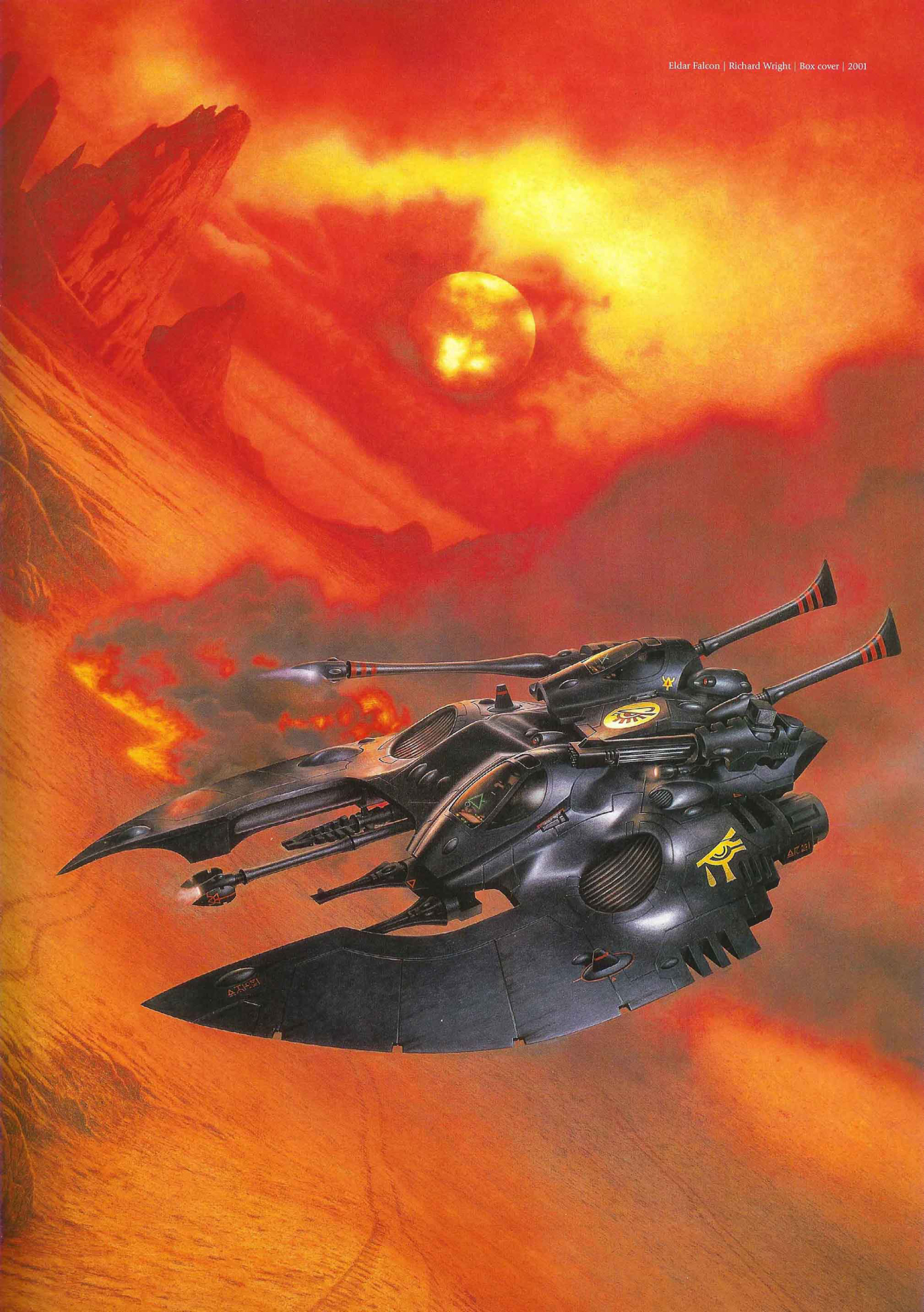 Falcons also have access to the Vehicle Equipment list, which has some solid picks on it. Since you probably want to be angling more towards the gun side of things, I would say that Spirit Stones (for a 6+ roll to negate any wound taken) or Crystal Targeting Matrix (ignore the Heavy penalty when firing at the nearest target) are your two best options. Both are reasonably cheap (10pts and 5pts, respectively) and give you an obvious and direct benefit that you can work with; most of the other options on the list focus on making advance moves, which you don’t really want to do because it means giving up a lot of firepower.