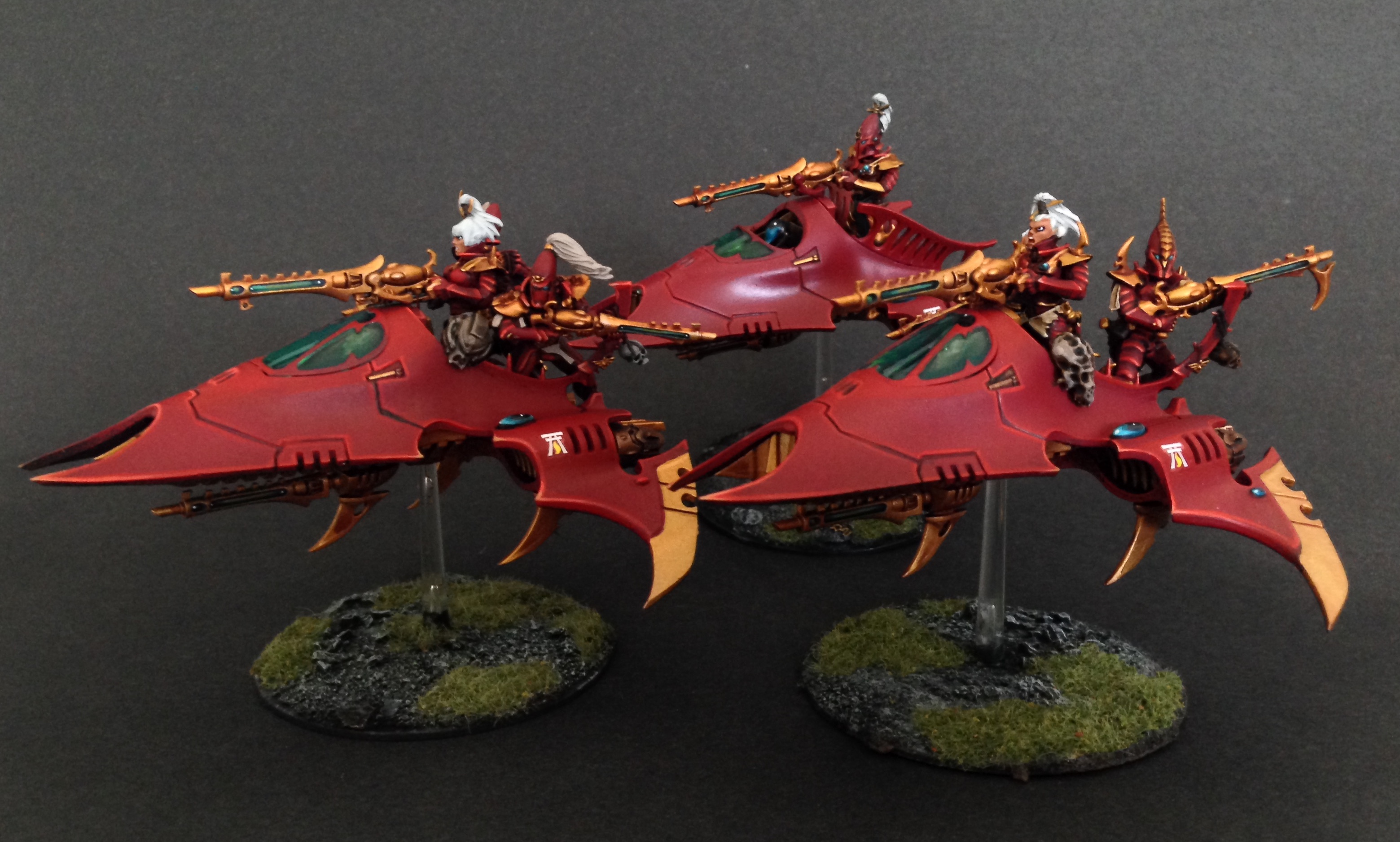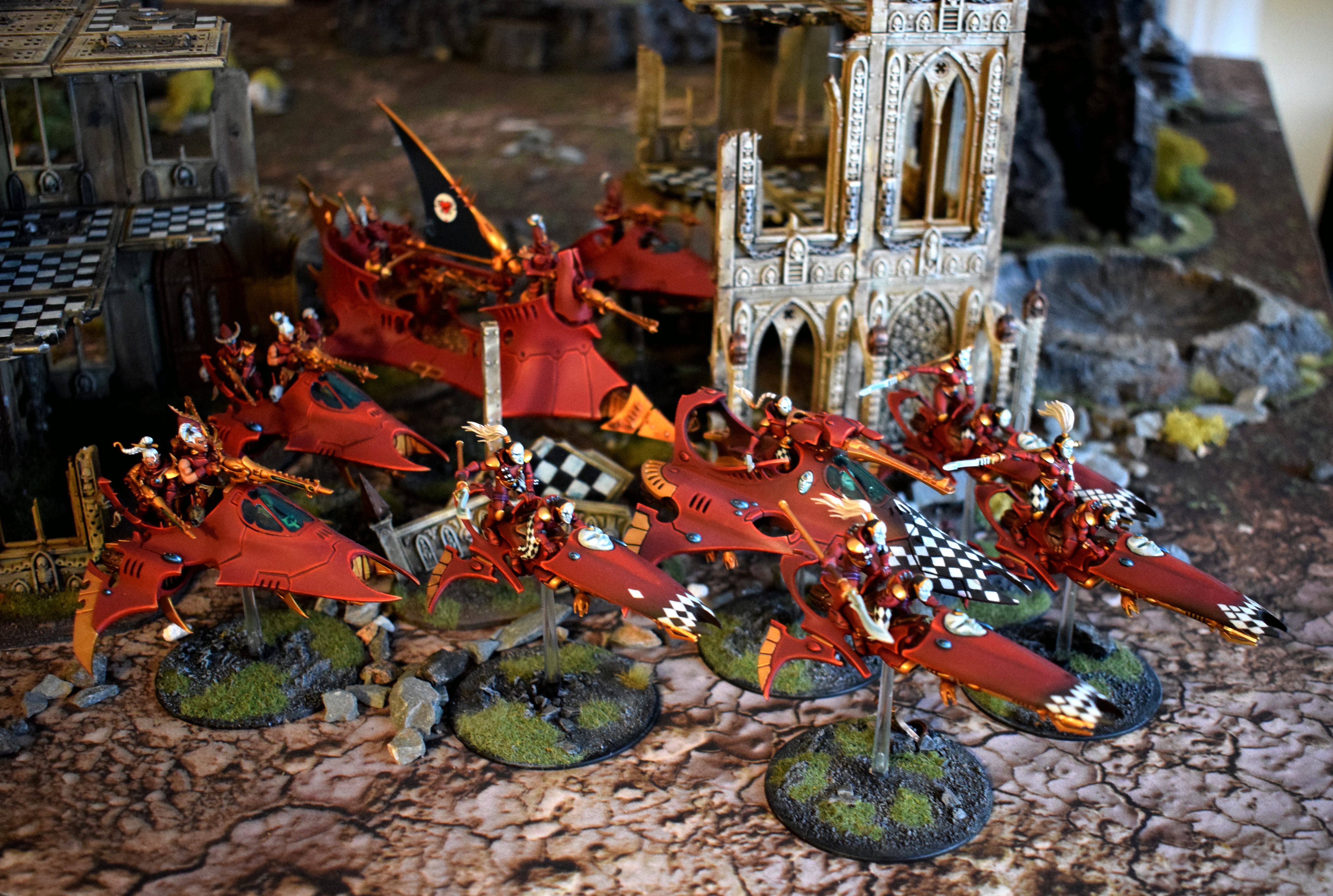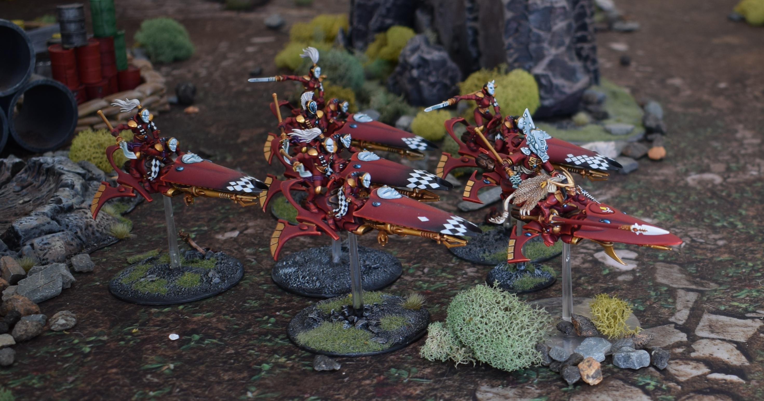 I could go on forever about how they jive with the other Craftworlds, but for the sake of brevity I’m going to focus simply on Alaitoc (shout out to Iyanden and Saim-Hann though. Highly underrated in ways similar to Flayed Skull). I take a battalion of Alaitoc and Flayed Skull in nearly every game and its been absolutley brilliant. Flayed Skull Venom-born warriors match perfectly with Alaitoc due to their in built -1 to hit. Unlike Alaitoc though, that -1 to hit is not affected by range, meaning you can get up into mid-field and still have that -1 to hit, which is fantastic because the one thing Alaitoc doesnt want to do, is jump mid-field and grab objectives. Flayed Skull seems almost designed to do that with their extra movmenet (19″ without advancing) as well the fact that you want to be in rapid-fire range with all the splinter weaponry, as well as Blaster range.