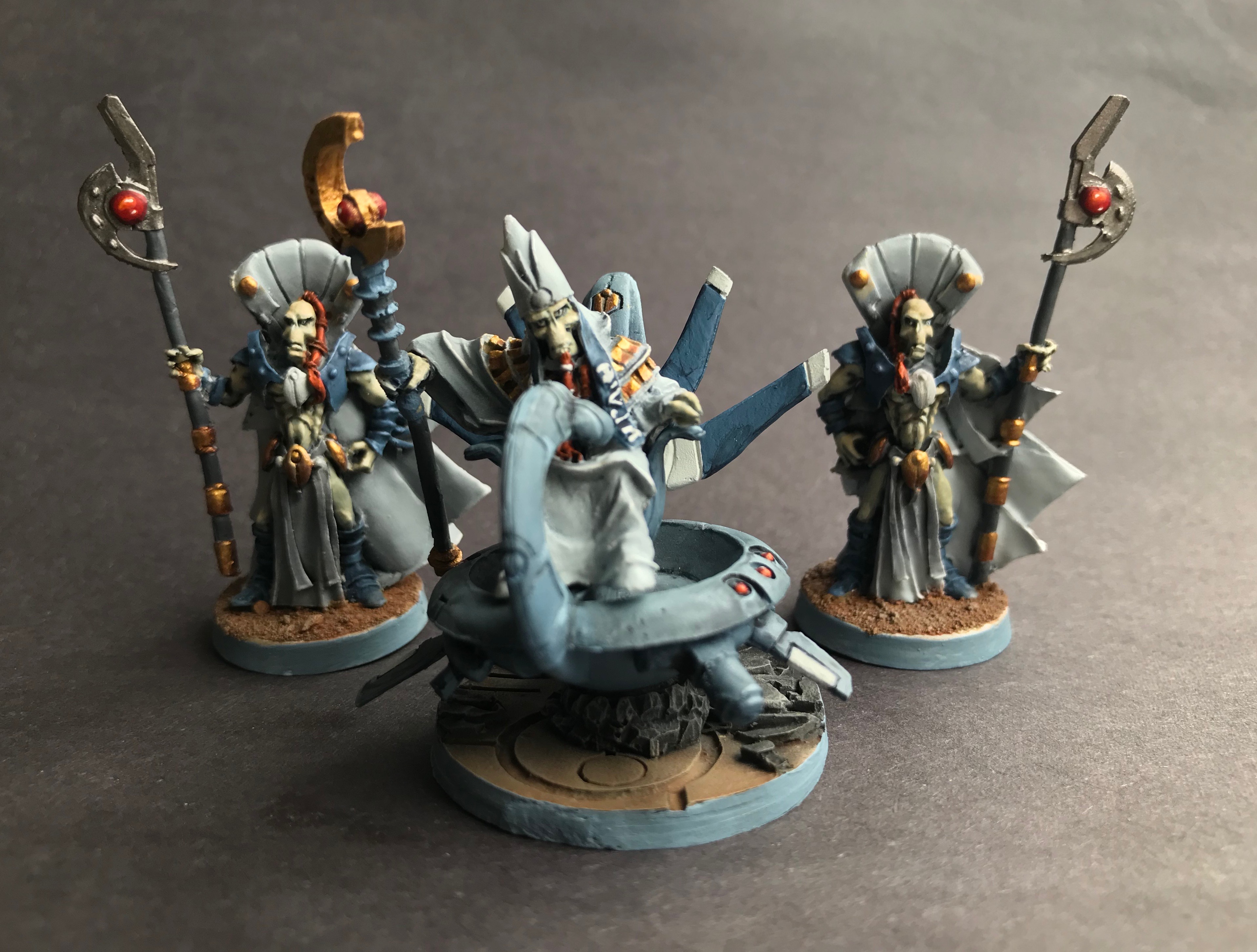 The supreme leader of all of the T’au, most respected and honored of all Ethereals, Aun’Va inspires hope and excellence across the entire T’au empire. Despite any number of small technicalities (for instance, the fact that he was murdered some time ago by an Imperial assassin during the war for Mu’Gulath Bay), Aun’va and his Honor Guard can be found on T’au battlefields supporting, leading, and enabling T’au soldiers to fight for the Greater Good all across their sector.