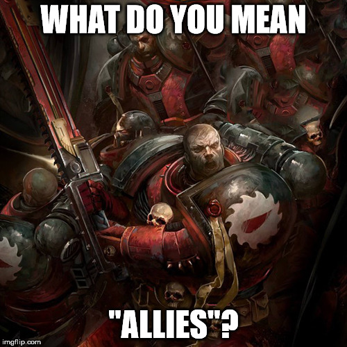 I must admit that I find this argument among the weakest, though it still has merit on the surface and is worth considering. Novels and codexes alike feature battles and stories that incorporate multiple factions working in concert to accomplish a task. The entire Siege of Baal campaign series was practically made to justify one story in the 5th edition Blood Angels codex about Blood Angels and Necrons fighting together against the Tyranids. You can justify pretty much any alliance and combination of forces in the lore when creating your armies with a liberal application of broad-narrative strokes, though the rulebook has put some obvious limitations on what works in matched play. There is simply no narrative reason to prevent people from bringing mixed faction armies, but that is not what we are really trying to figure out.